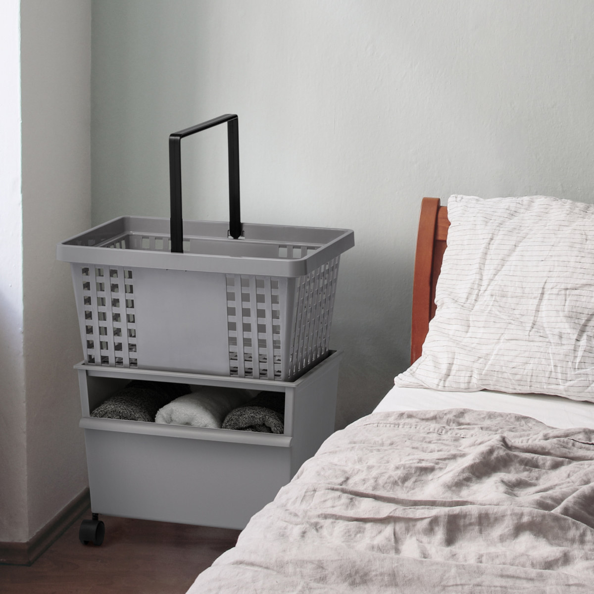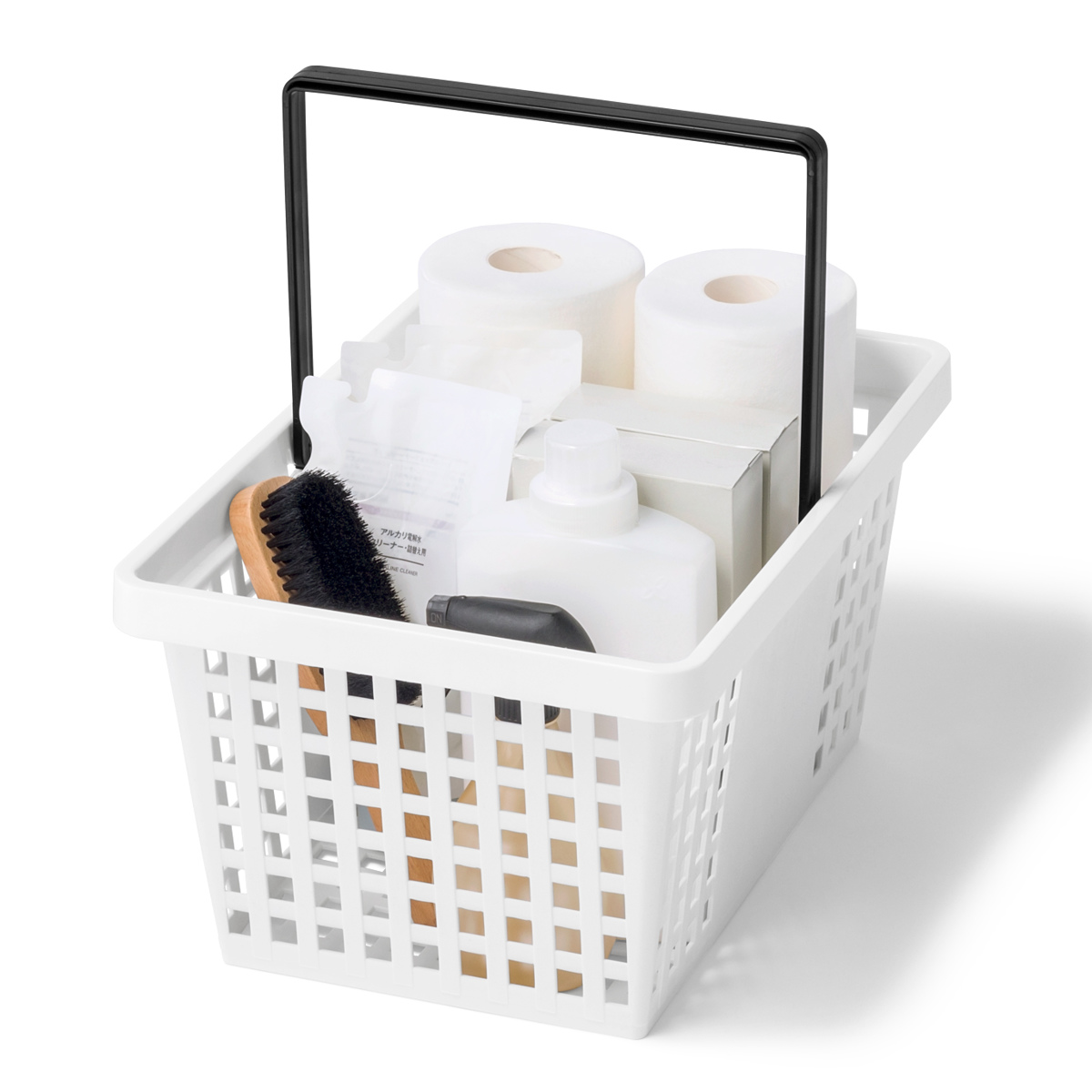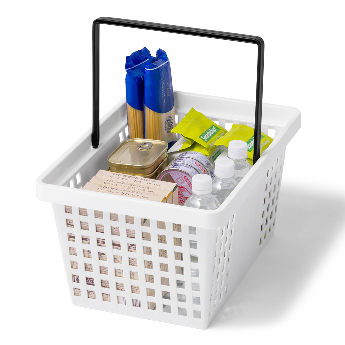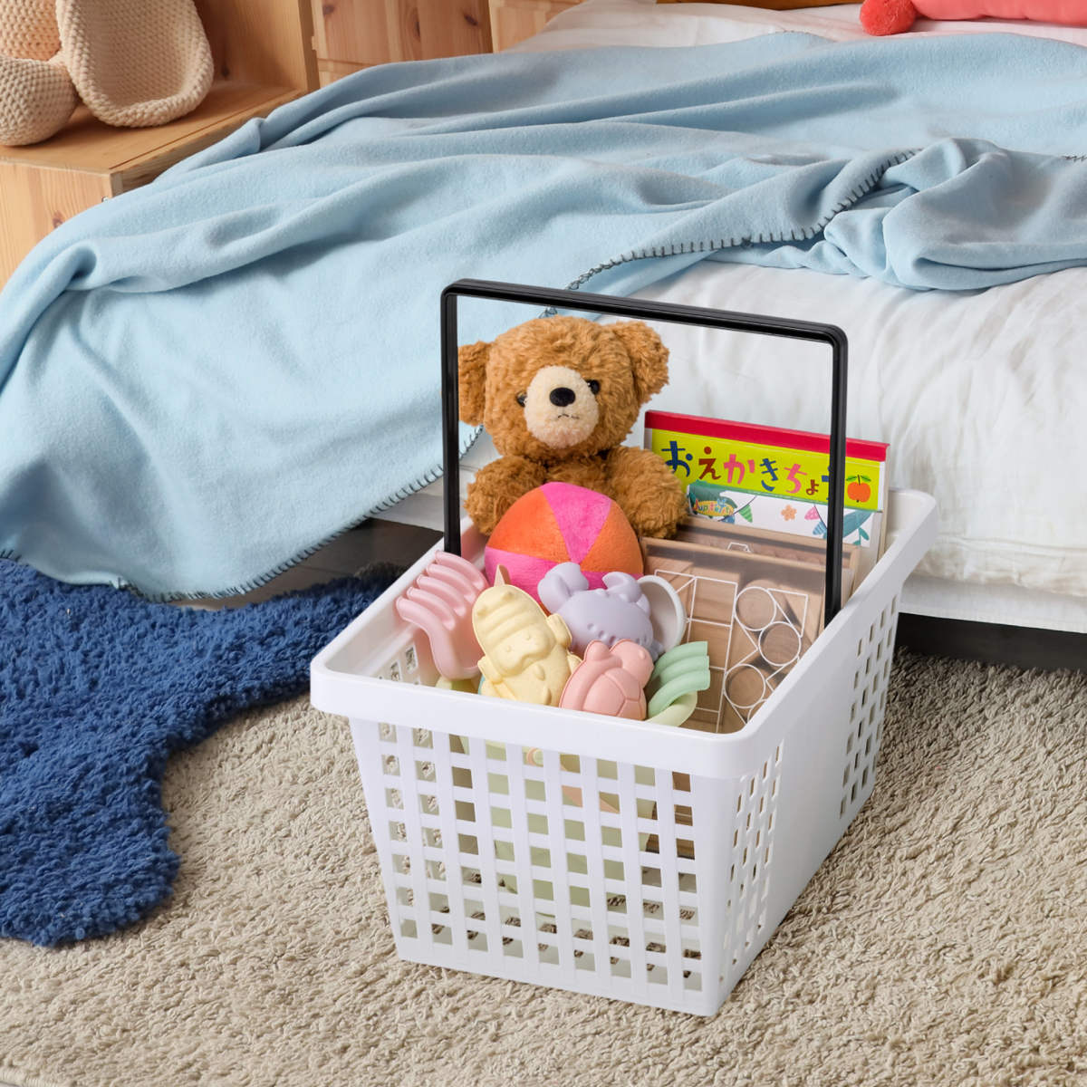 シンプルでベーシックなデザインのキャリーバスケットは、ご家庭のさまざまな収納シーンで活躍します。無造作に入れておくだけでも見た目が整うので、整理整頓が苦手な方にもおすすめです。