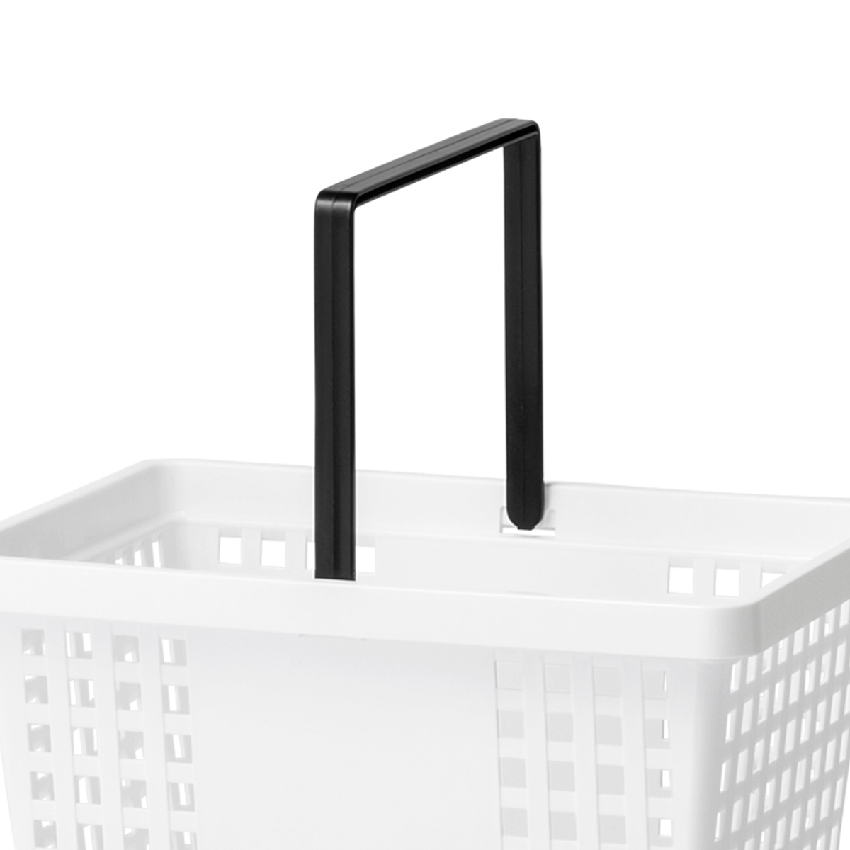 バスケットには大きめのハンドルが付いており、耐荷重は約10kgと丈夫。高さのある物を立てて収納してもハンドルが干渉しないので、使い勝手が抜群です。 また、ハンドルは倒すとバスケット内にきれいに収まるため、使わない時でも見た目がスッキリ。お部屋に置いたままでも生活感を抑えて、スマートに使えます。
