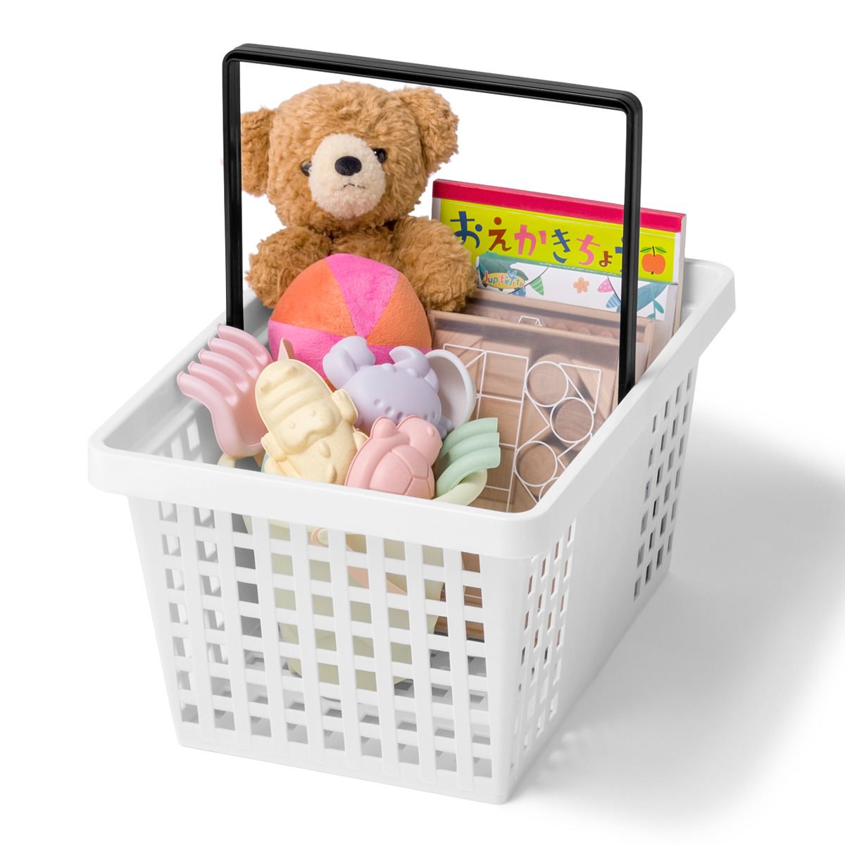 バスケット キャリーバスケット 幅43×奥行30×高さ22cm ( 収納 フリーバスケット かご カゴ 積み重ね 小物収納 小物入れ 小物 スタッキング プラスチック ストッカー 収納箱 おもちゃ おもちゃ箱 オモチャ ) 【ホワイト】