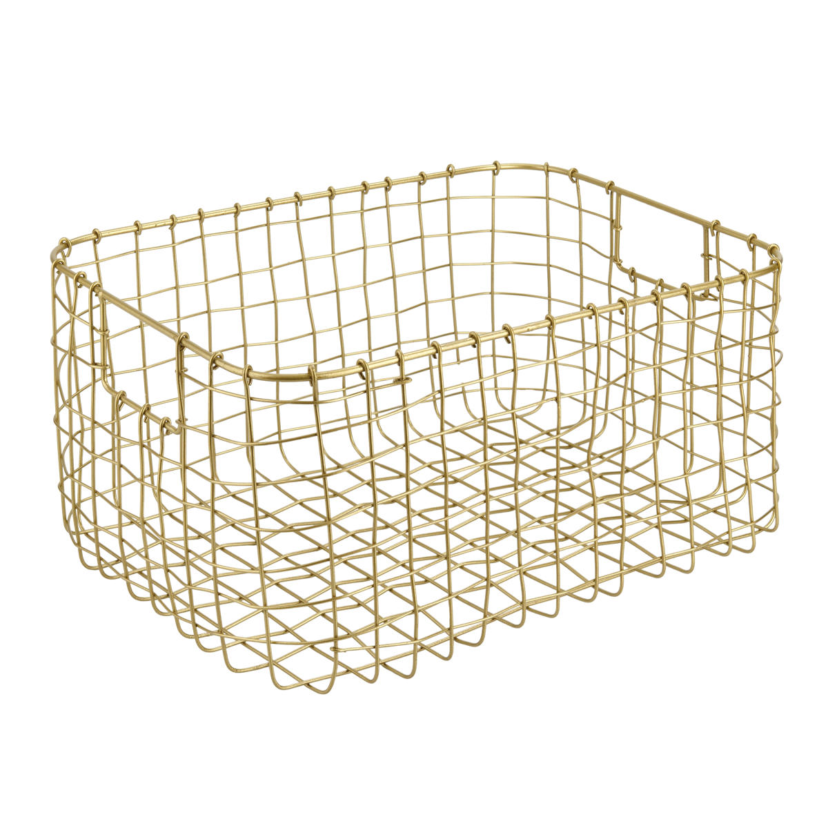 真鍮をイメージしたゴールドカラーが、空間にさりげない華やかさを添えるワイヤーバスケットです。使う場所を選ばずお家のどこに置いても自然になじみ、インテリアを上品に引き立てます。
