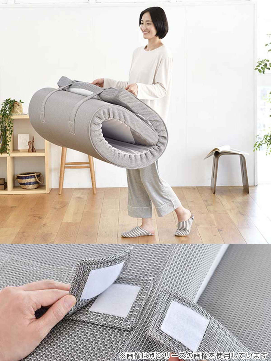 付け外しが簡単な、面ファスナー仕様のベルトを使いロール状にすれば、コンパクトになり移動や収納もしやすく便利です。就寝時以外は空間を広く使えるので、お部屋が狭い人や空間を有効活用したい人におすすめです。