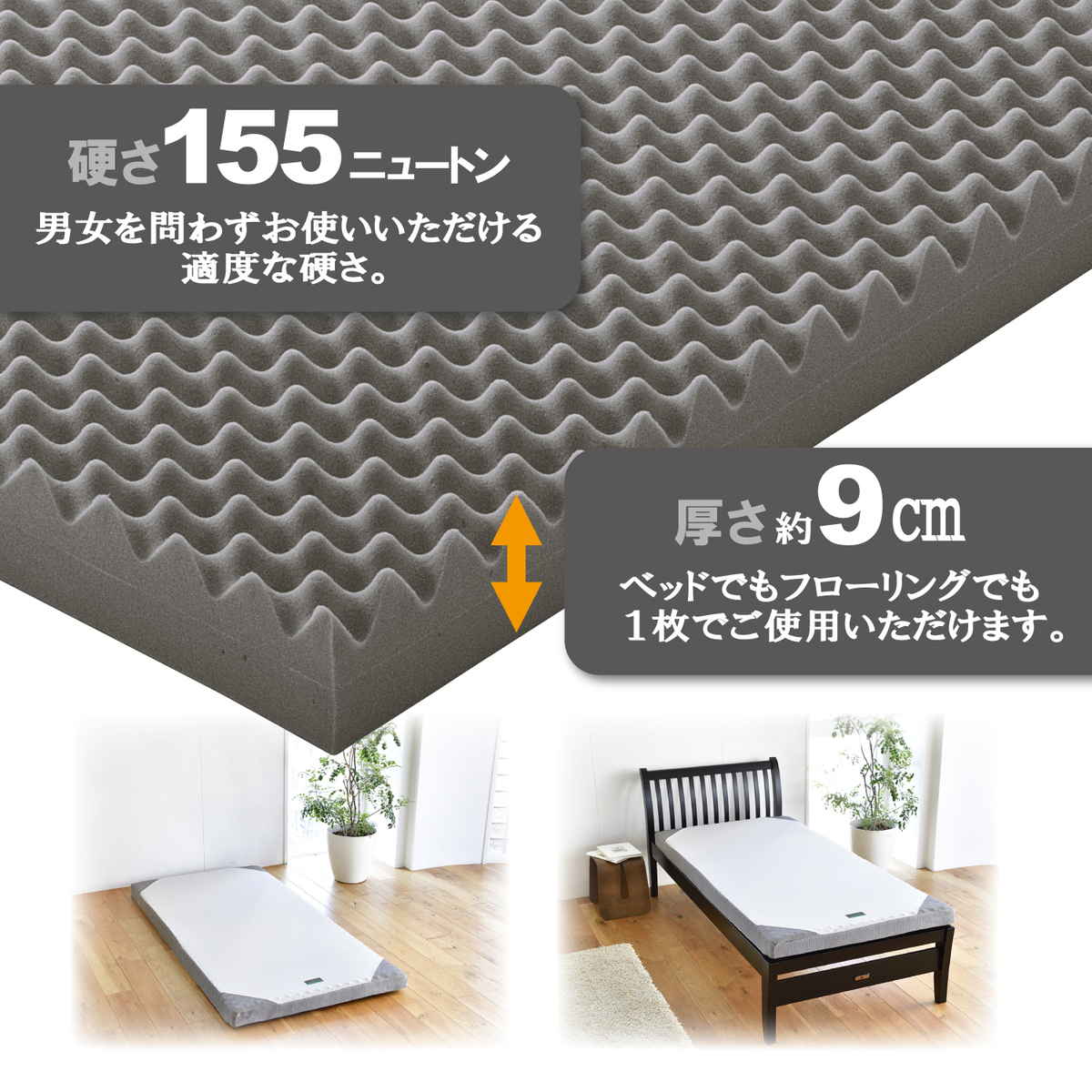 厚さ9cmあるのでしっかり身体を支えます。硬すぎない適度な反発力の155ニュートンです。