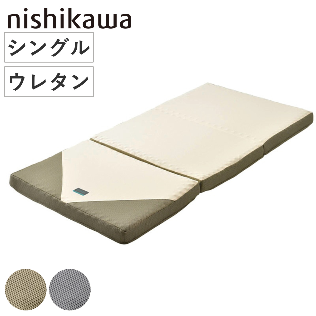 西川 三つ折りマットレス セミダブル RAKURA 体圧分散 ( ニシカワ ウレタン 三つ折り カバー洗濯可 寝具 健康サポート 厚さ9cm カバー取り外しOK カバーが洗える 寝姿勢 耐久性 ゴールド )