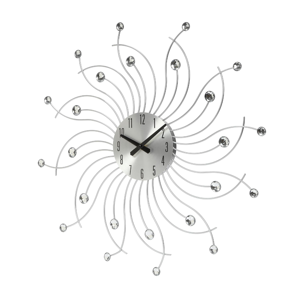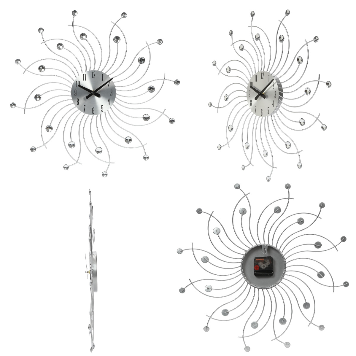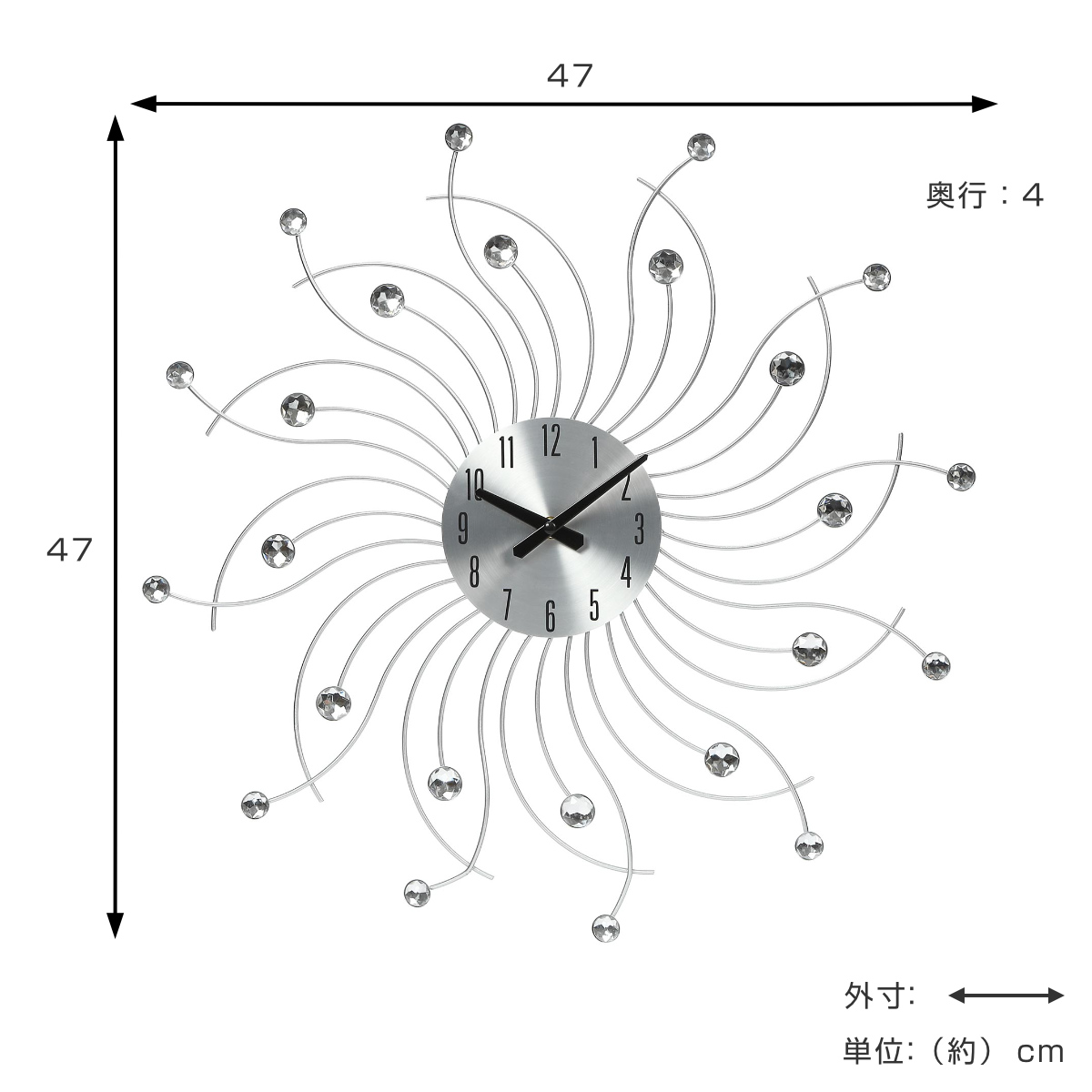 ゆらゆら広がる細いラインと、先端にあしらわれた装飾パーツが光を受けて繊細にきらめく、オブジェのような掛け時計です。壁面に動きと立体感を生み出し、時計でありながらウォールアートのように空間を彩ります。