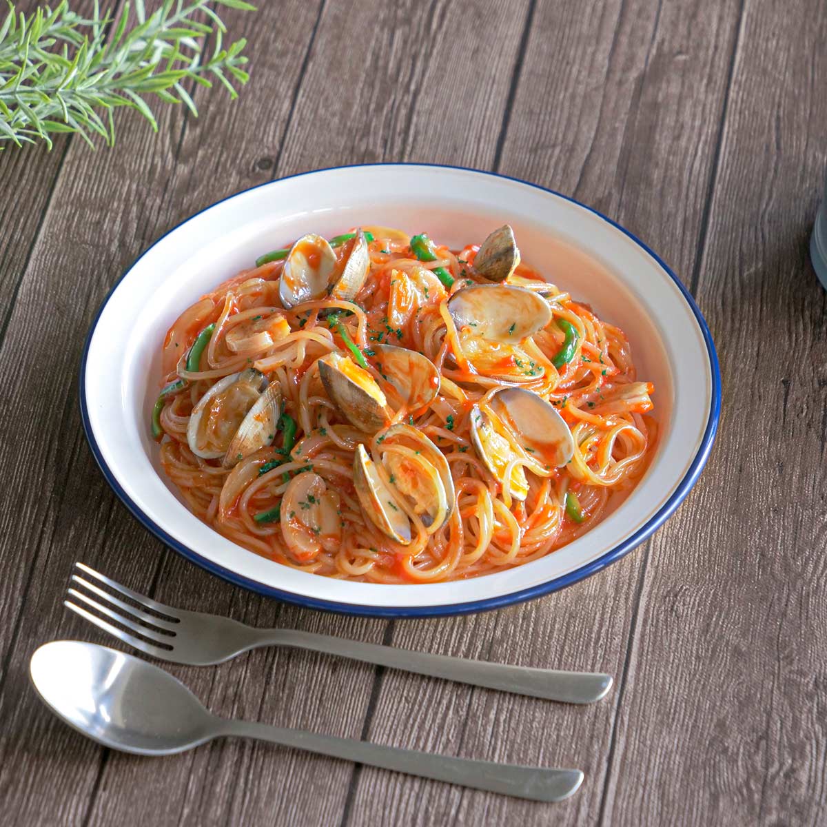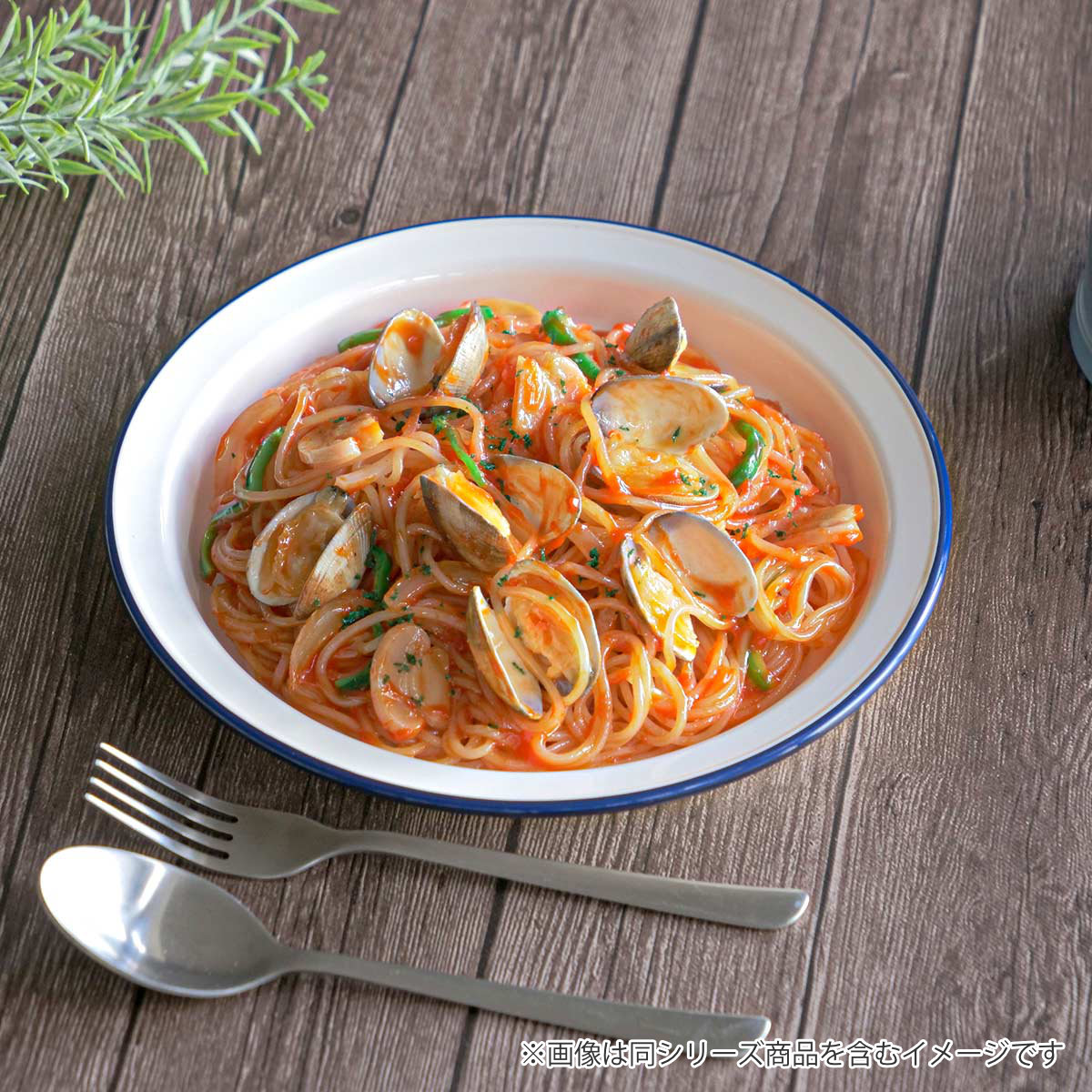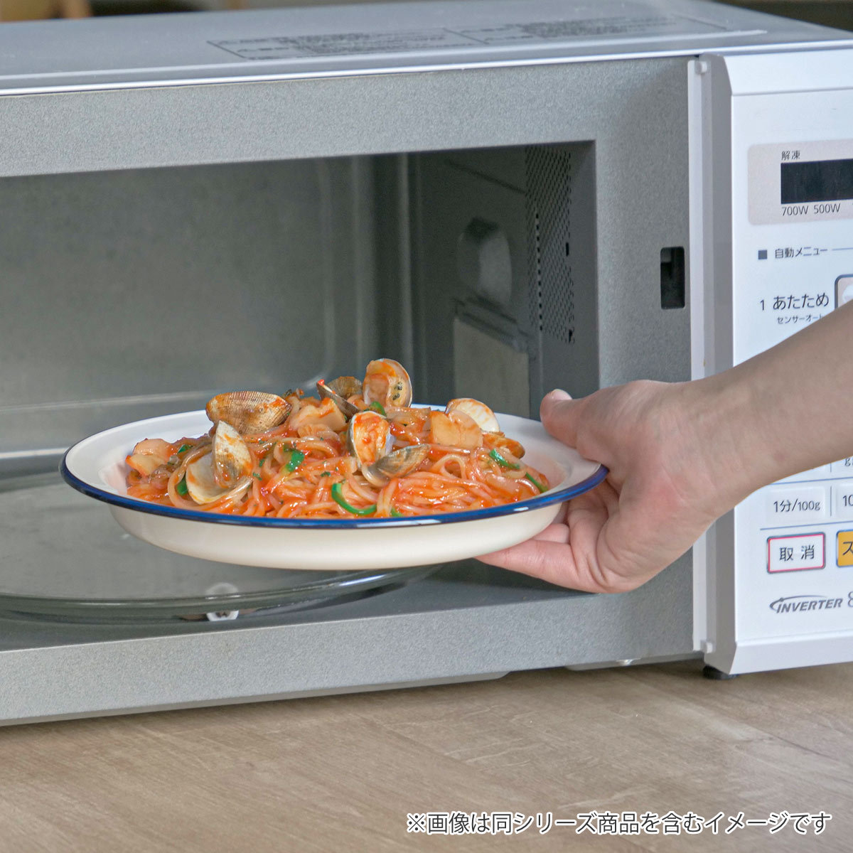 まるでホーローのような見た目が可愛い、プラスチック製のプレートです。一人前のパスタやオムライスなどにちょうどいいサイズです。モーニングプレートやワンプレートランチなど幅広いシーンで活躍してくれます。普段使いにはもちろん女子会やホームパーティーにもぴったりです。