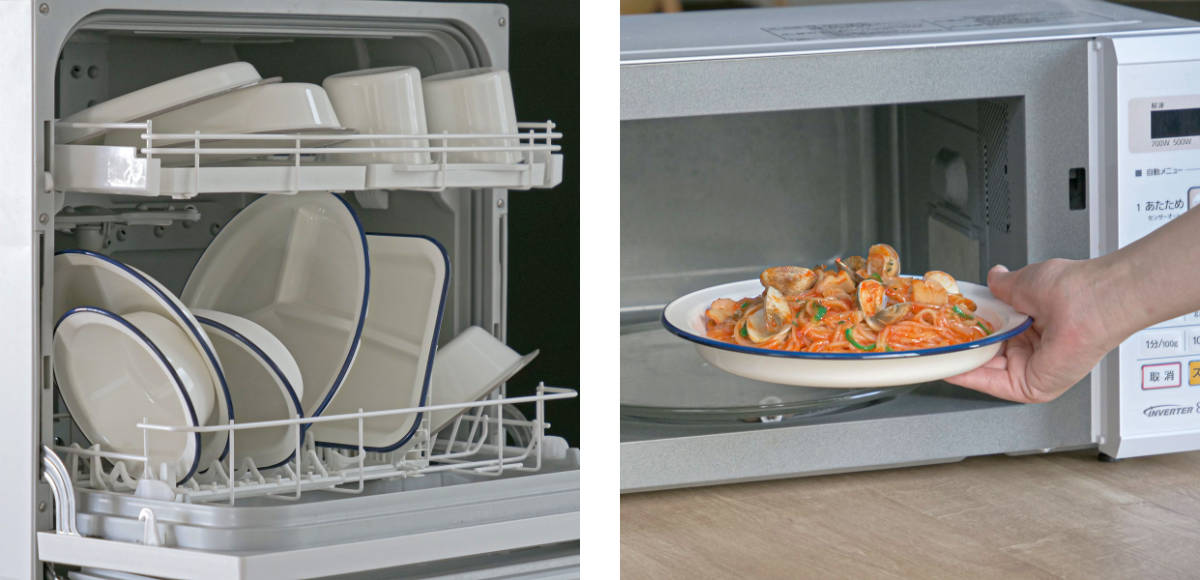 食器洗い乾燥機、電子レンジに対応しているので、後片付けや飲み物の温め直しもラクラクです。毎日の食卓に気兼ねなくお使いいただけます。
