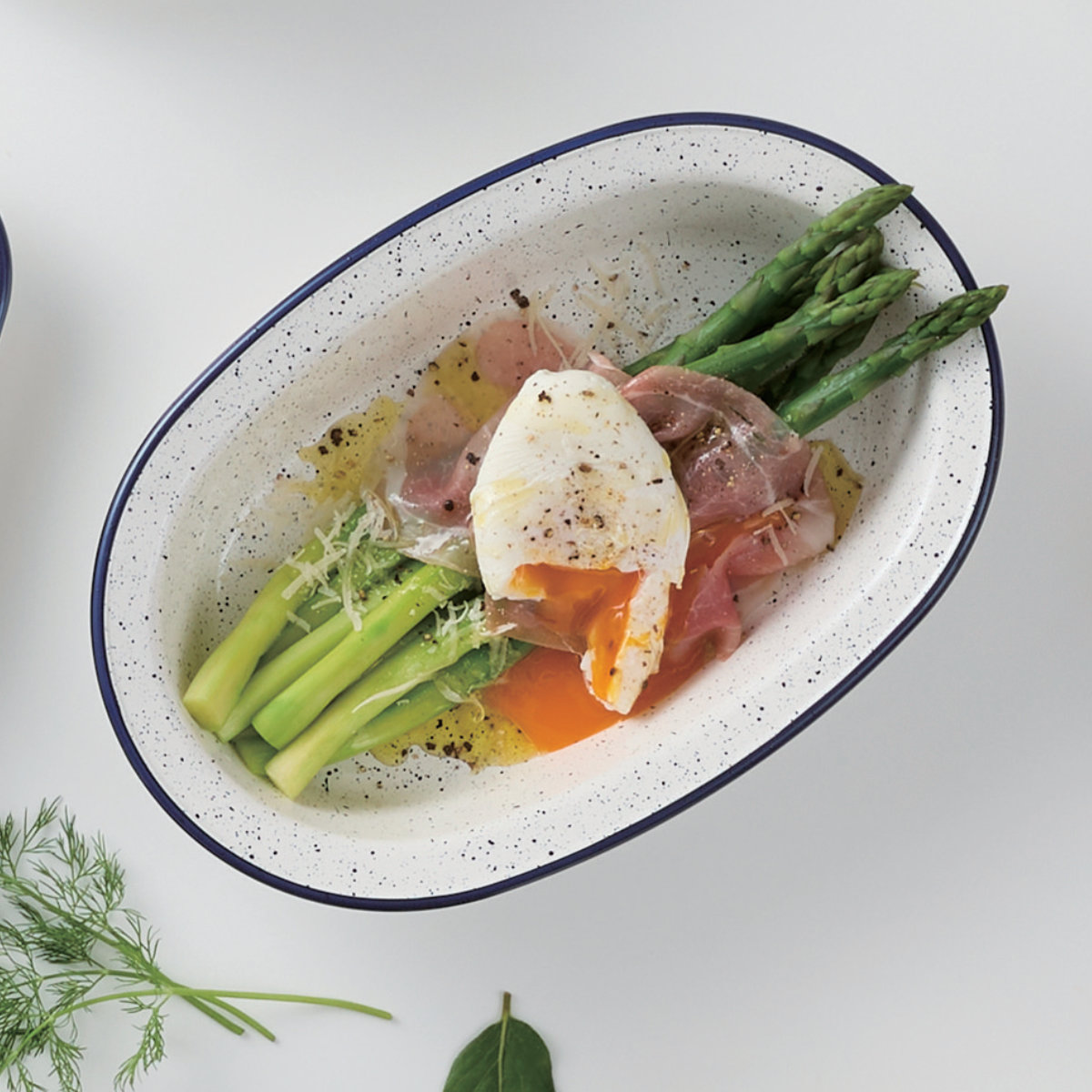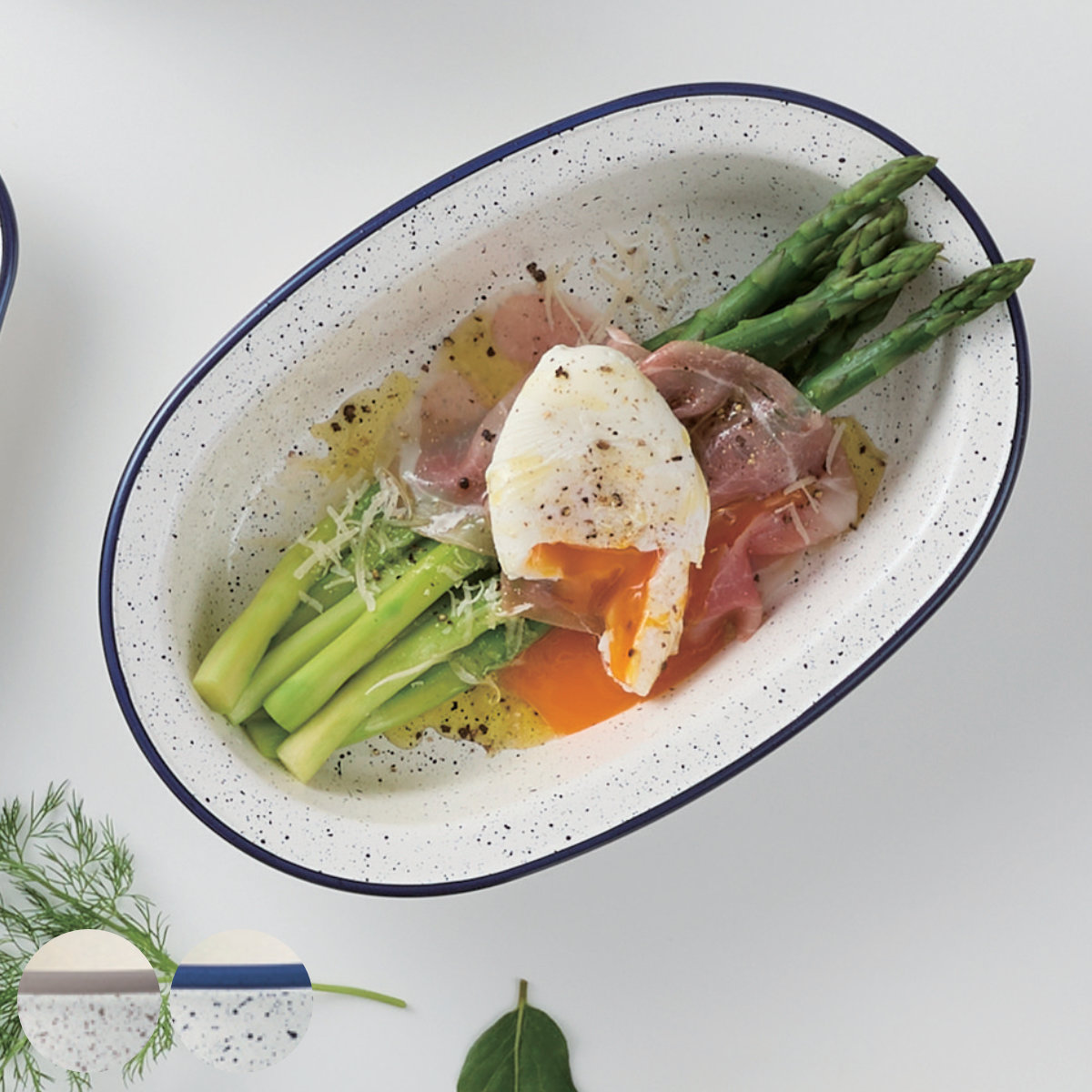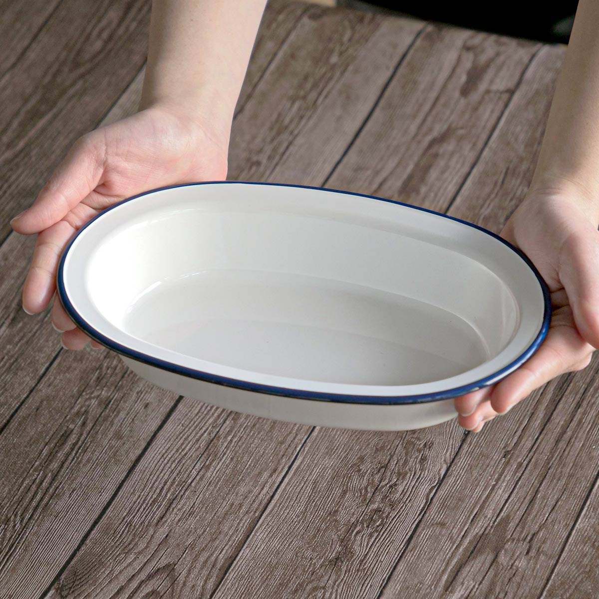 まるでホーローのような見た目が可愛い、プラスチック製のボウルです。アスパラガスを切らずにそのまま盛り付けられる、ゆとりのあるロングサイズです。普段使いにはもちろん女子会やホームパーティーにもぴったりです。