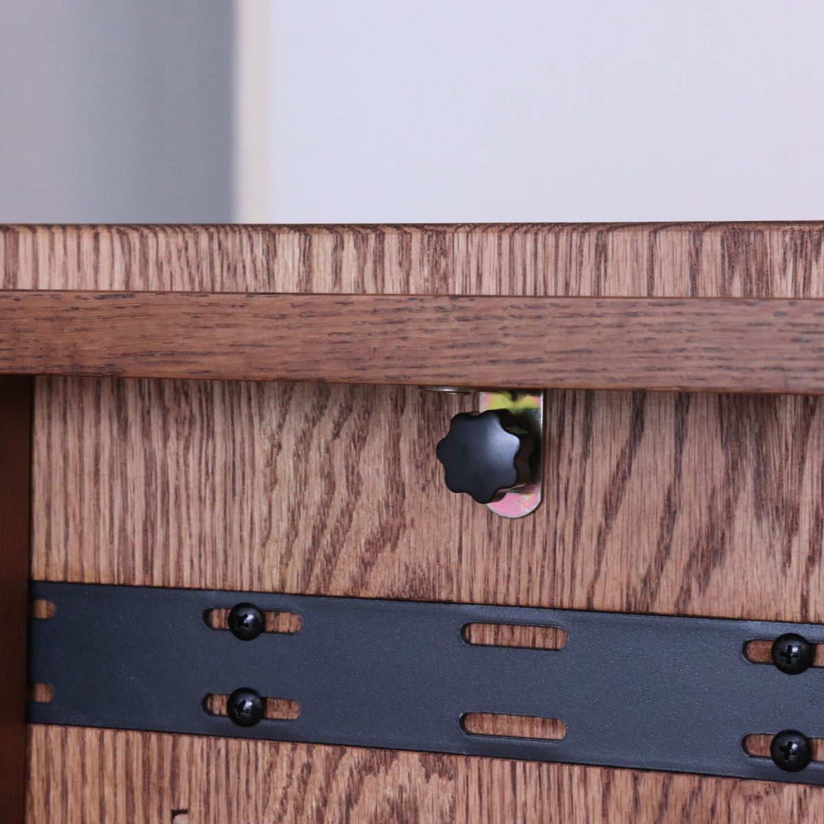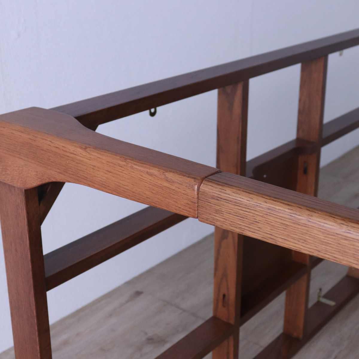レッドオーク無垢材を使用した、高級感のあるデザインです。木目や節に同じものは一つとしてなく、使い込むほど味がでます。節などは敢えて埋めておらず、自然な風合いとしてお楽しみください。