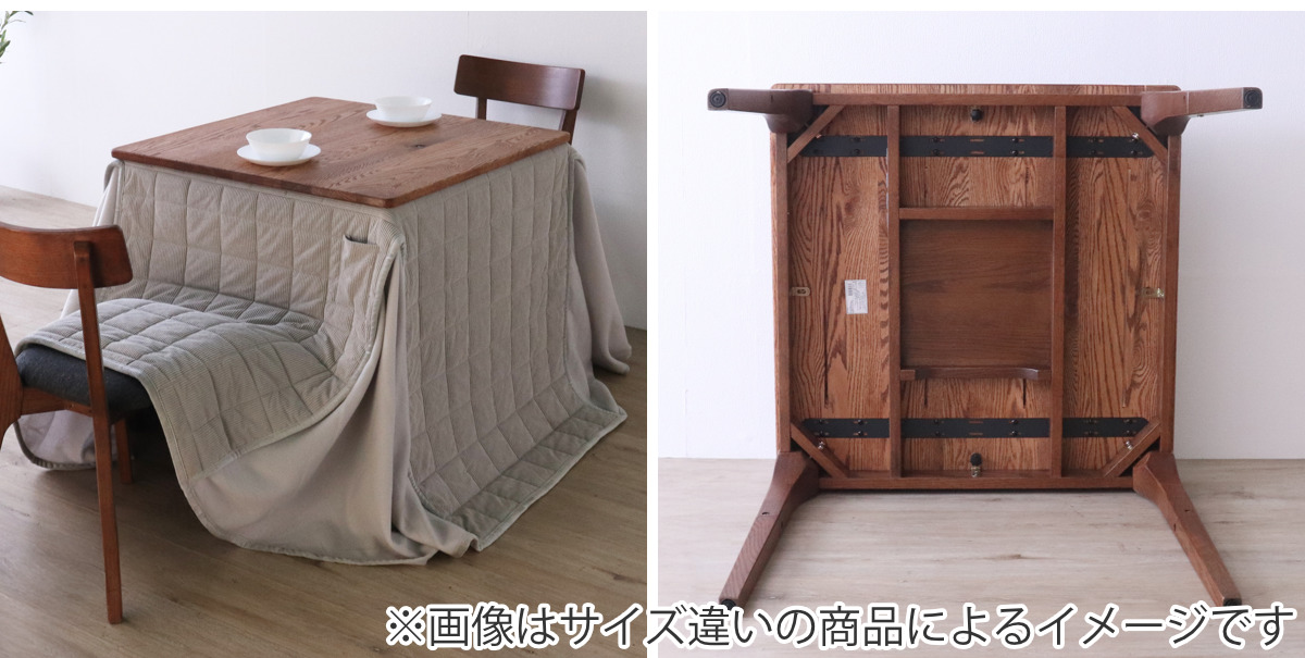 布団をかけるとあったかいこたつに早変わりする、便利なダイニングテーブルです。布団を取ればオールシーズンお使いいただけます。