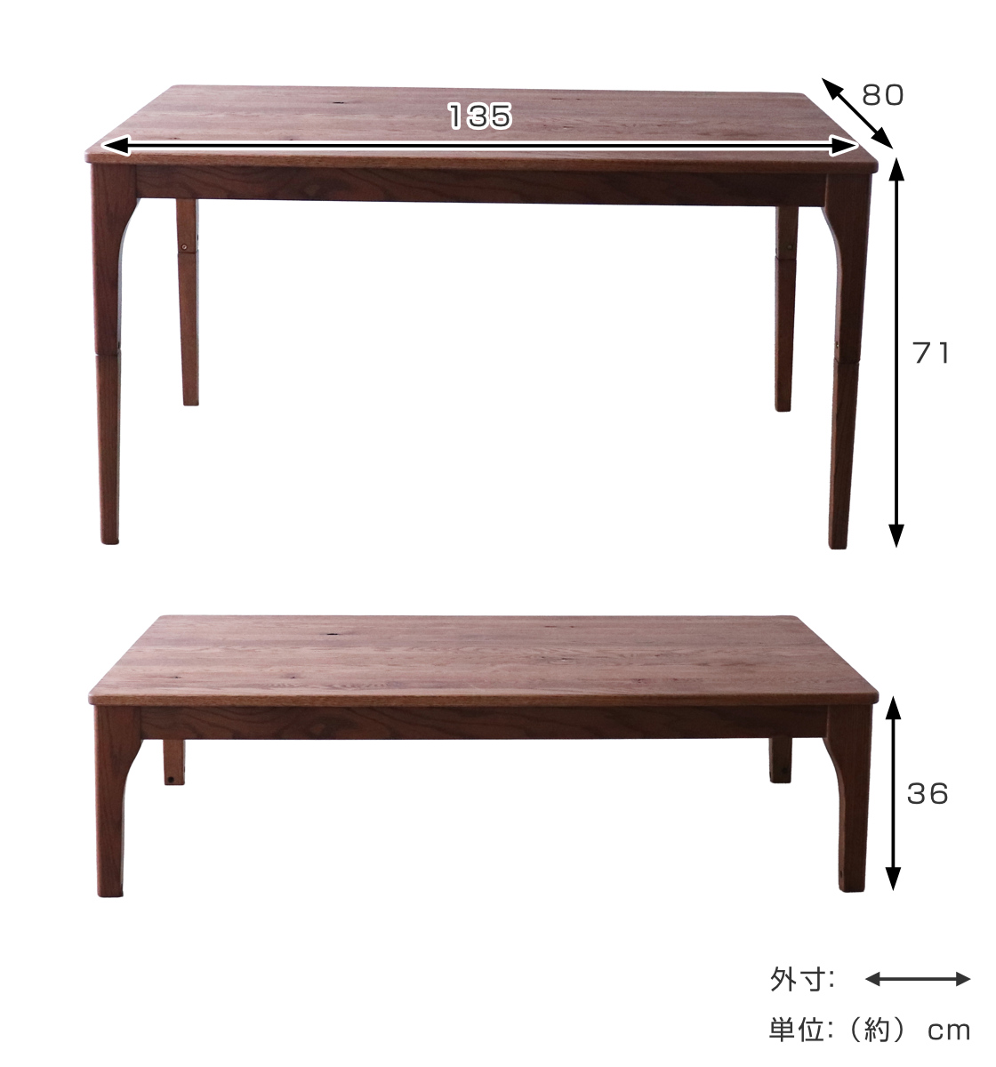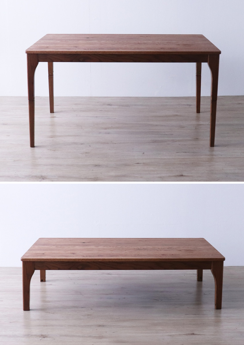 ダイニングテーブル 幅135cm 布団が掛けられる こたつテーブル レッドオーク 無垢材 ( テーブル 食卓テーブル ダイニング リビングテーブル ヒーターなし 木製 天然木 継脚 高さ36cm 高さ71cm 木製テーブル ウッドテーブル )