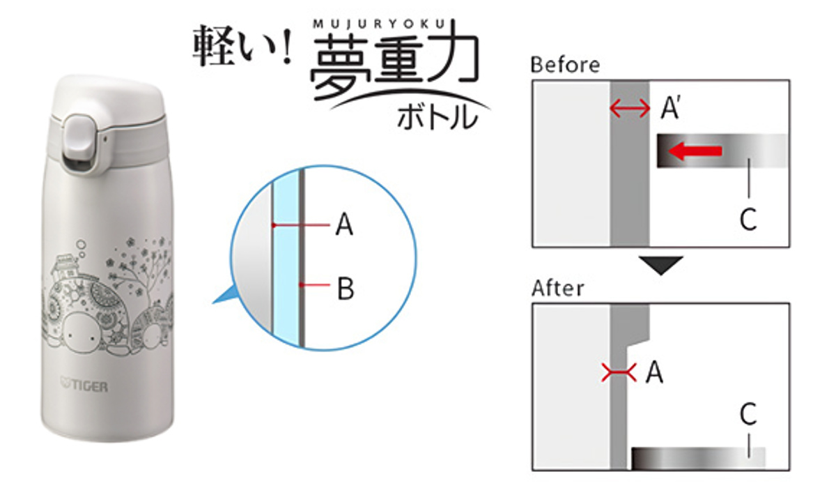 タイガー魔法瓶独自のスピニング加工で驚くほどの軽さを実現しました。約210gの軽量ボディは、毎日のお出かけにも気軽に持ち歩けます。