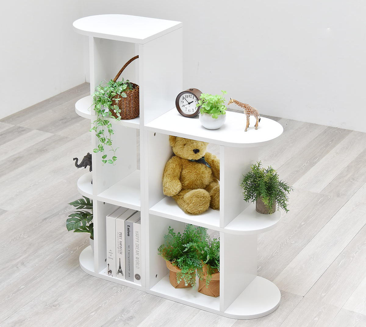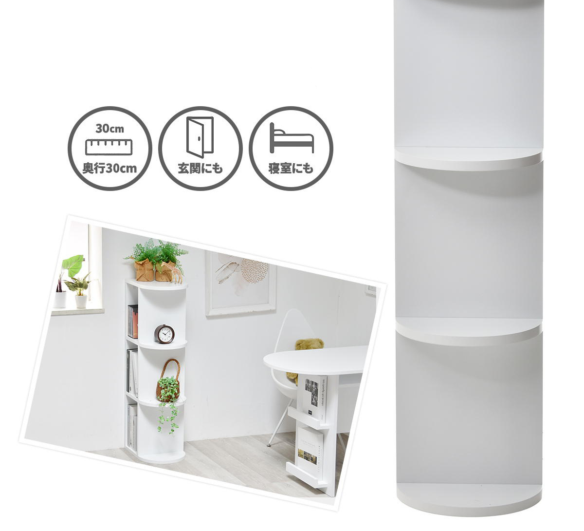 半円型のステージ部分に観葉植物や雑貨を置けば、おしゃれなディスプレイスペースとしても活躍します。