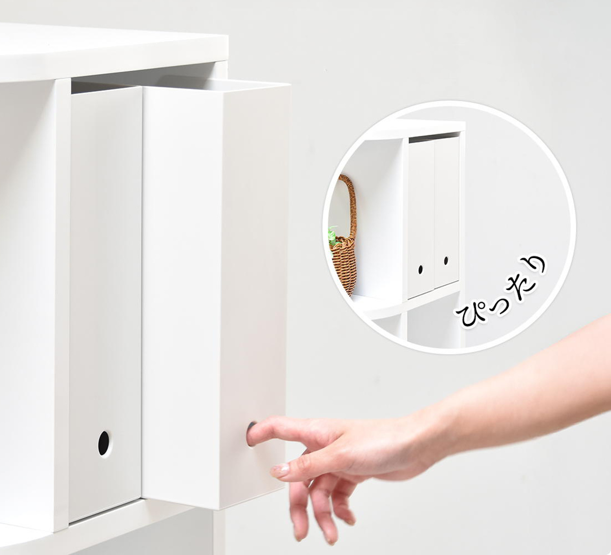 収納部の高さは約33cmあり、一般的なA4サイズのファイルボックスや雑誌も収まり、使い勝手のいいサイズです。