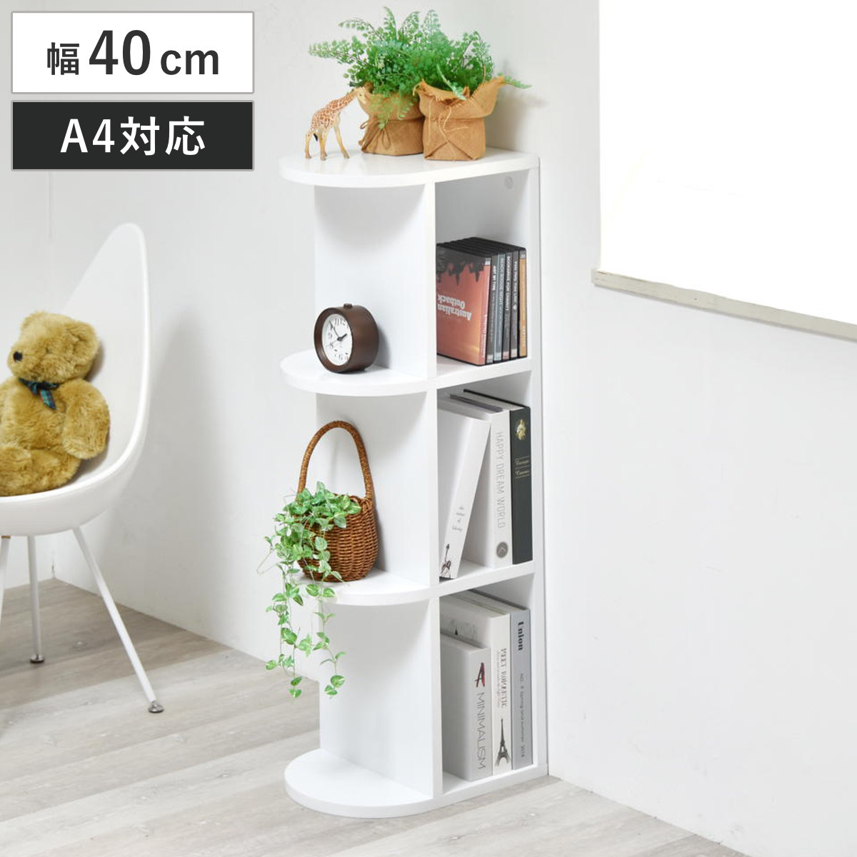 オープンラック 幅40cm 4段 本棚 A4対応 ホワイト ( ラック 棚 縦置き 横置き A4サイズ 卓上 本立て 2way シェルフ 飾り棚 花台 デスクサイド 四段 奥行スリム 組み合わせ )