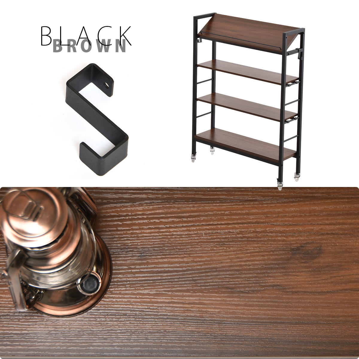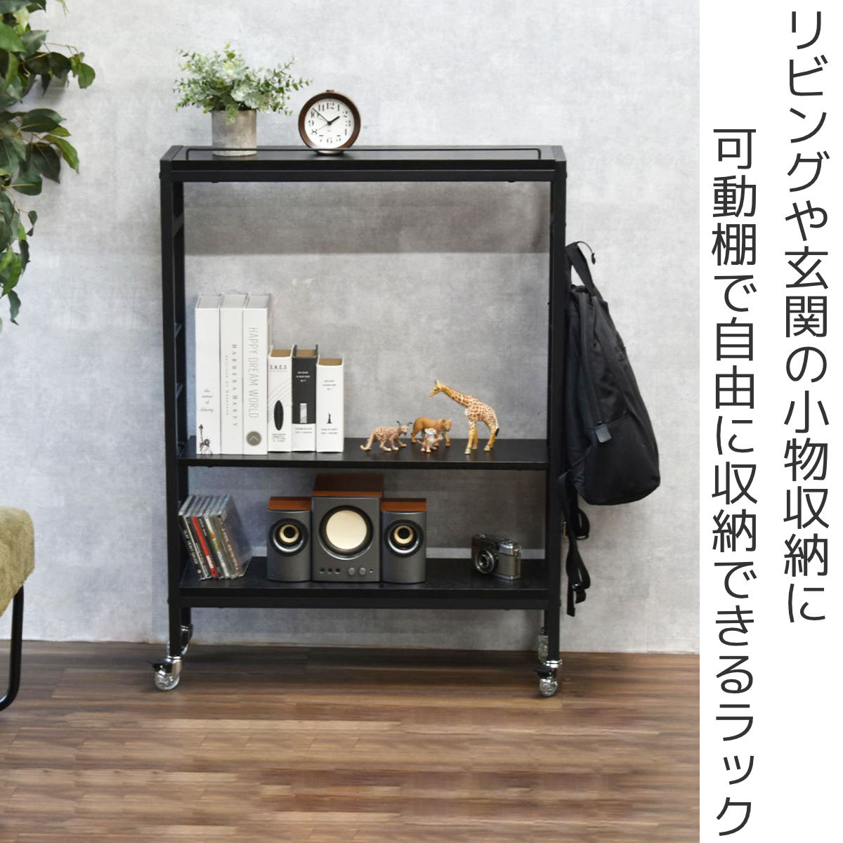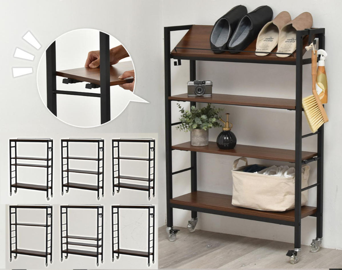 オープンラック 幅79cm キャスター付き 可動棚 木目調 スリム ( ラック 棚 本棚 スリッパラック フック付き 2way シェルフ 飾り棚 玄関 四段 奥行スリム スリッパ収納 ) 【ナチュラル】