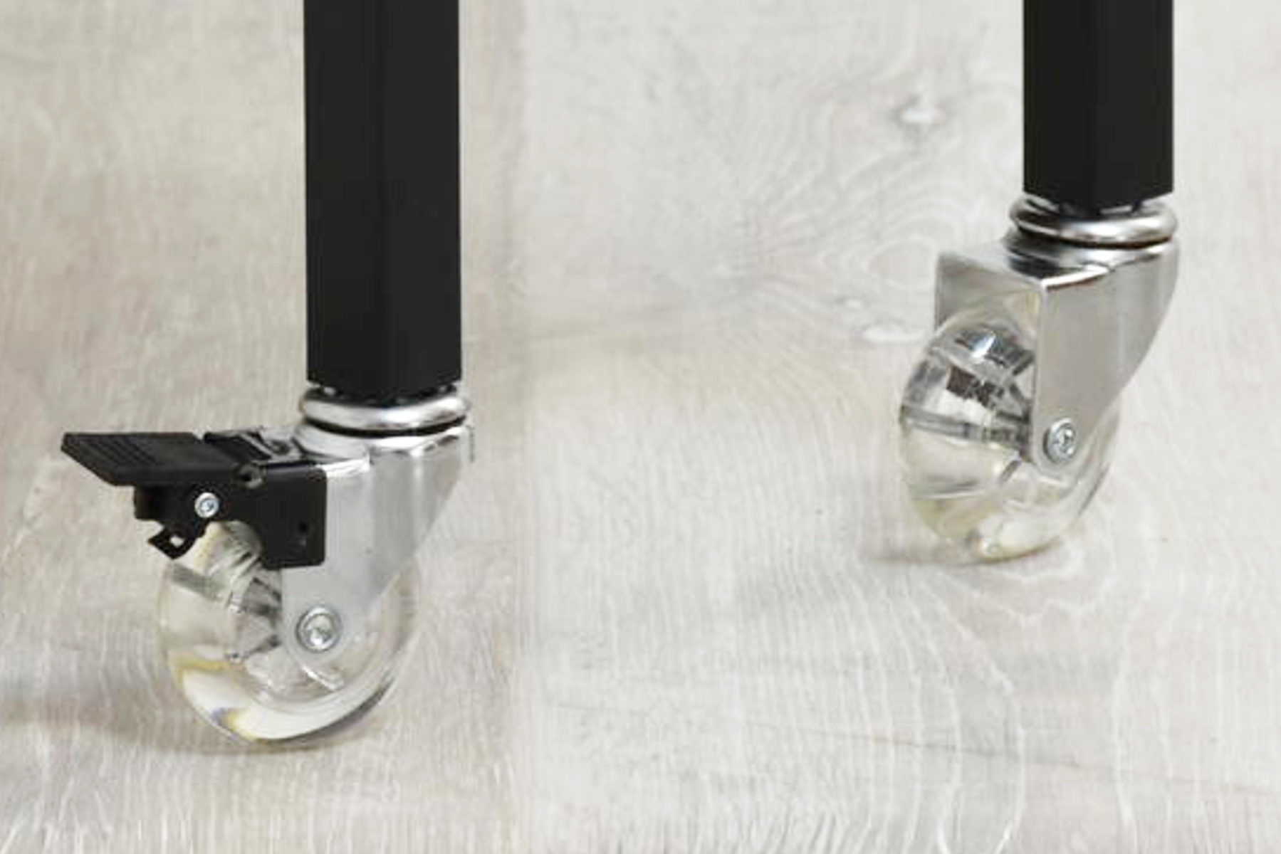 掃除や模様替えの際もスムーズに動かせるキャスター付きです。クリアデザインなので圧迫感がなく、インテリアにも自然に馴染みます。また、前面のキャスターにはストッパーが付いているのでしっかり固定もでき安心です。