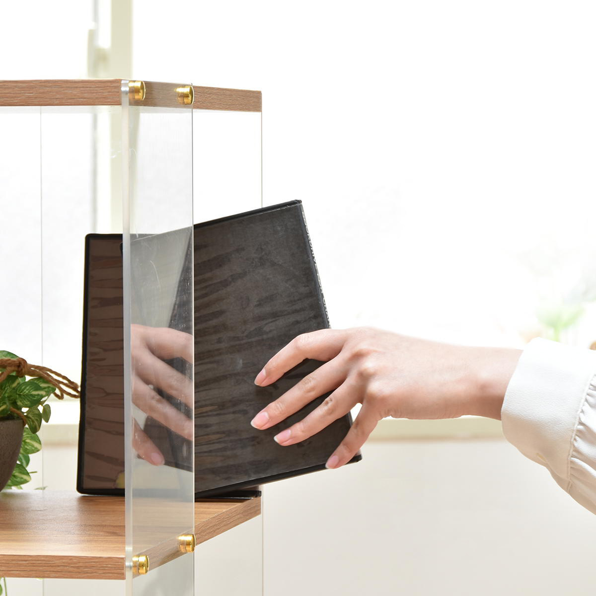 ガラスのような透明感がありながら、軽量で扱いやすいアクリル素材を使用しています。耐久性にも配慮されており、小さなお子様やペットのいるご家庭でも安心してお使いいただけます。
