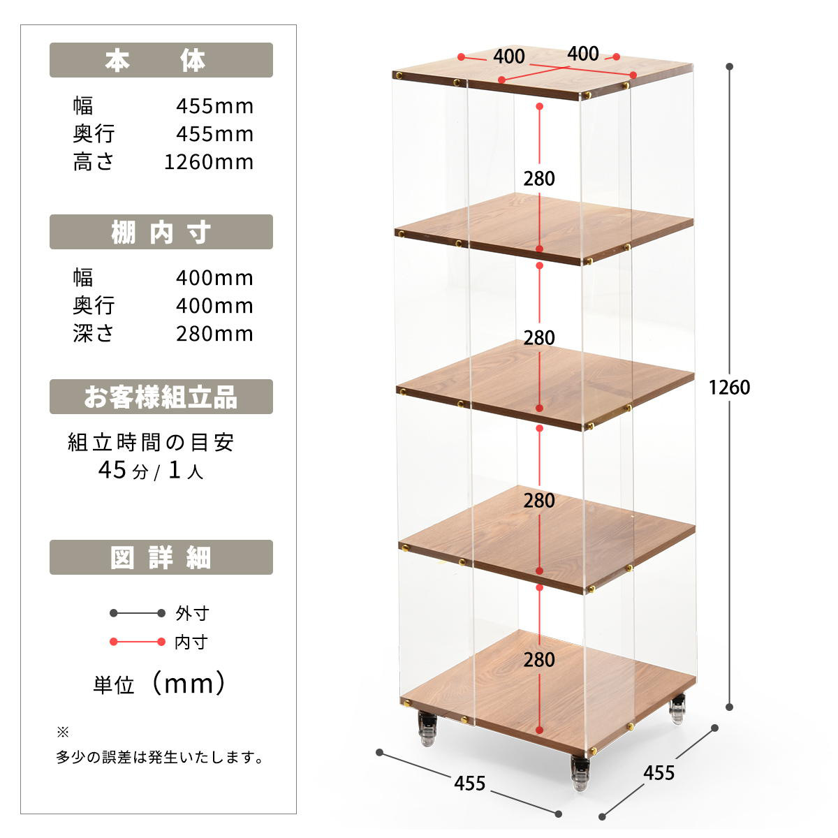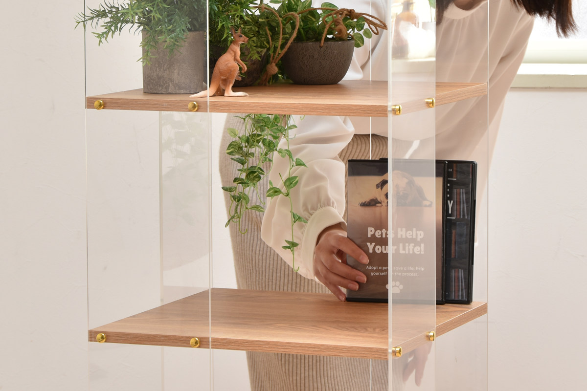 | 材質 | 【フレーム】 アクリル4.5mm 【棚板】 中質繊維板にメラミン貼り15mm |