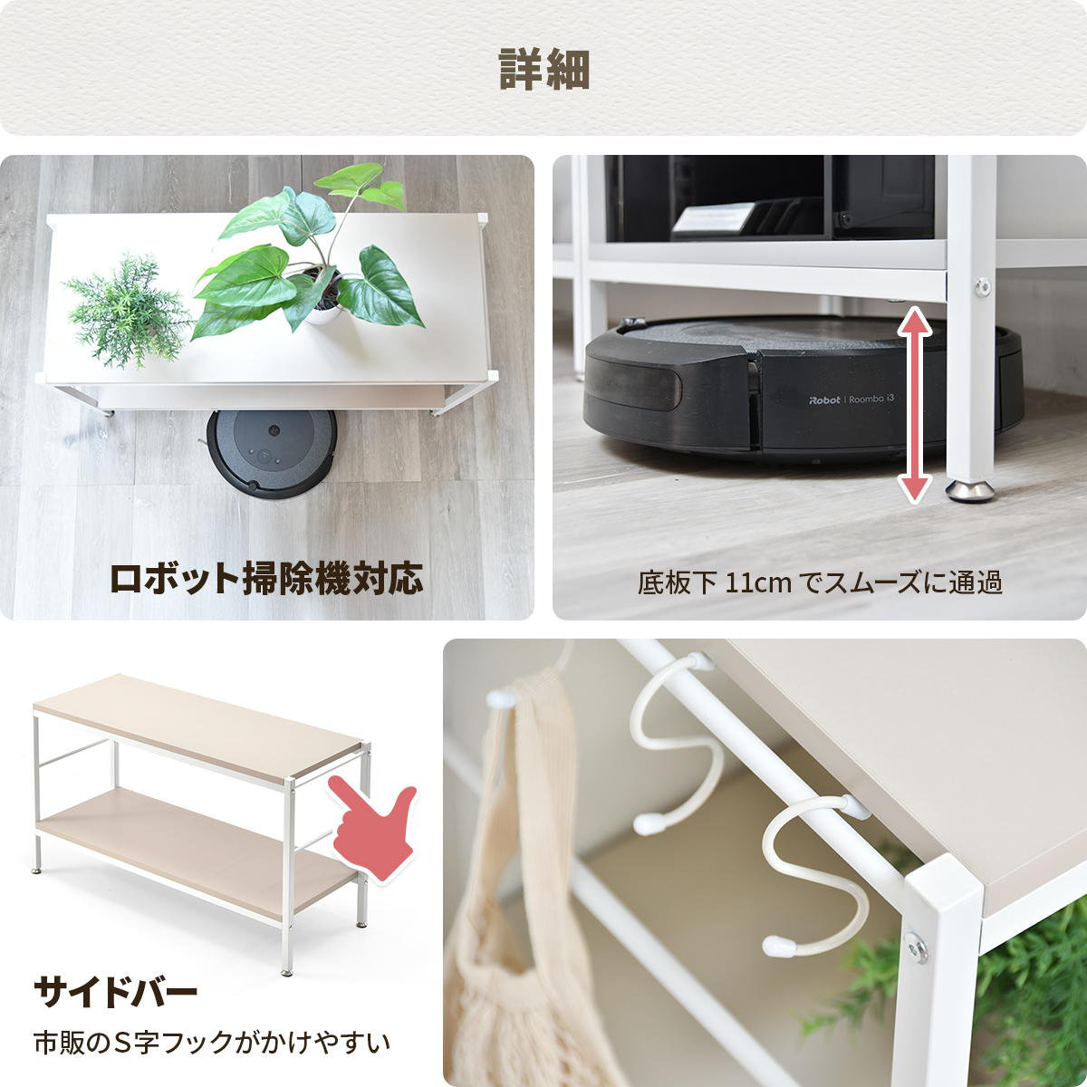 お掃除ロボットが通れる高めの脚部で、ホコリが溜まりやすいラック下をいつでも清潔に保つことができます。