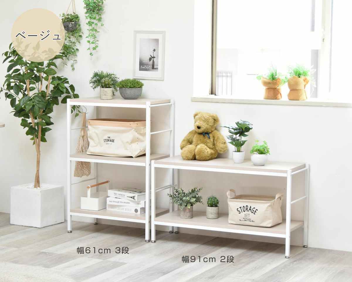 お部屋が整う優しい色味のオープンラック 幅91cm 2段