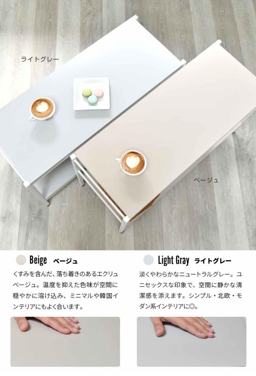 落ち着いた印象のベージュと柔らかなライトグレー。どちらも空間に馴染みやすく、使いやすい色味です。