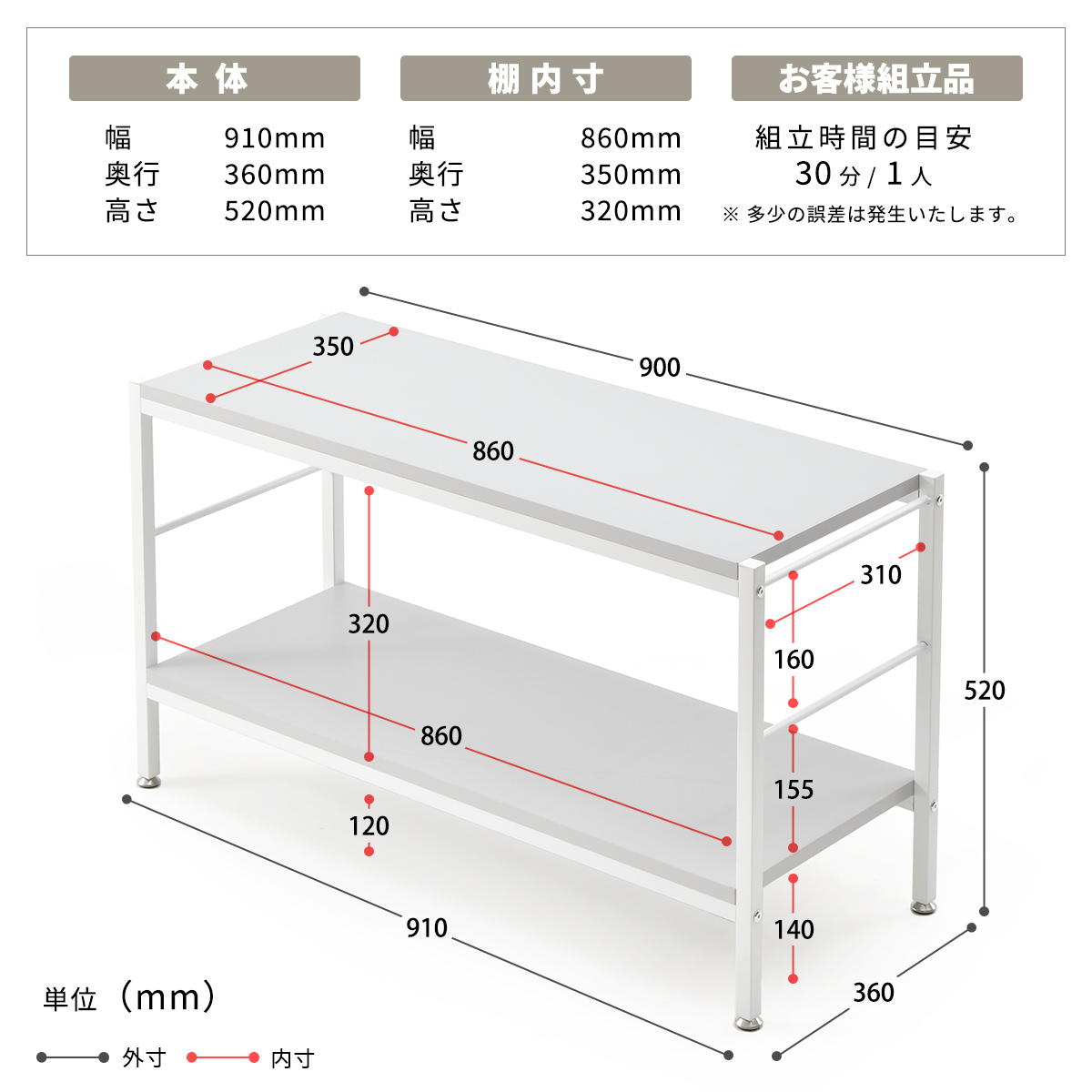 | 材質 | 天板、棚板:中質繊維版にメラミン貼り フレーム:スチール(エポキシ粉体塗装) |