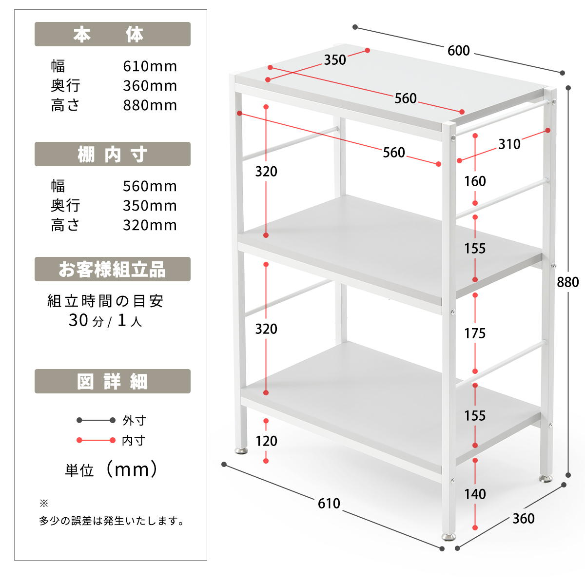◆ こちらのページでは【幅61cm 3段】をお求めいただけます