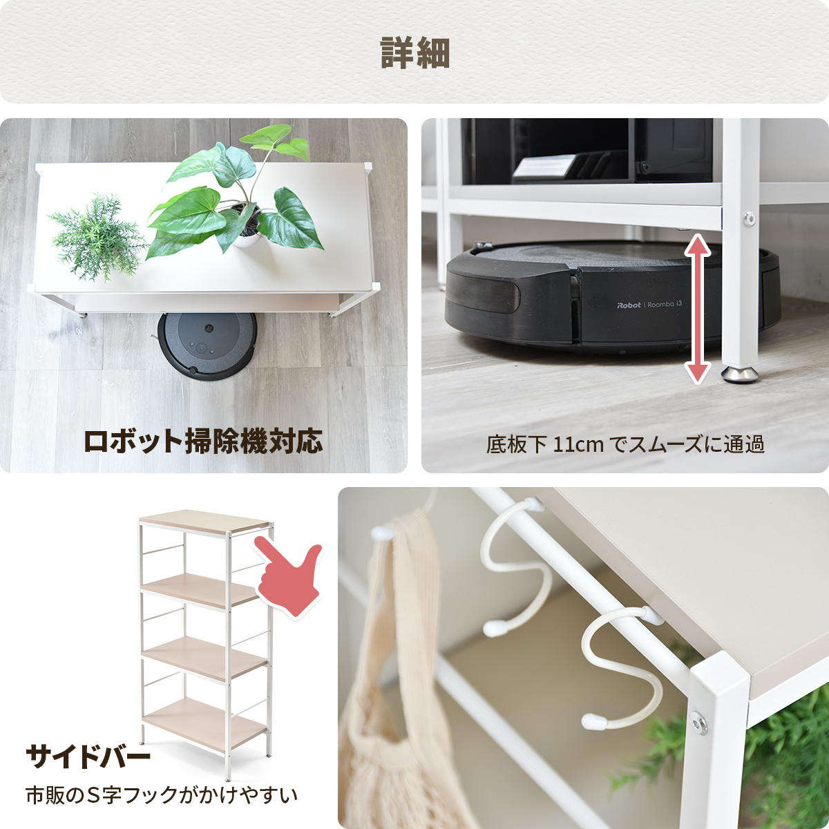 お掃除ロボットが通れる高めの脚部で、ホコリが溜まりやすいラック下をいつでも清潔に保つことができます。