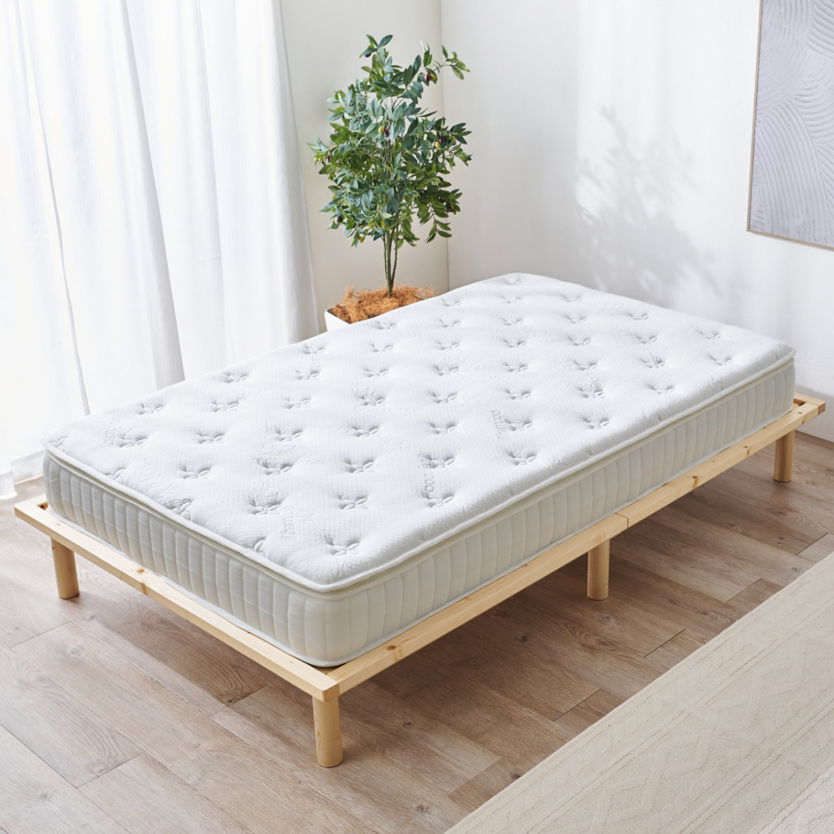 ふかふかの感覚をいつでも味わえる、ピロートップ付きです。 やさしく包まれるような寝心地で、ベッドに入れば特別な気分を味わえます。
