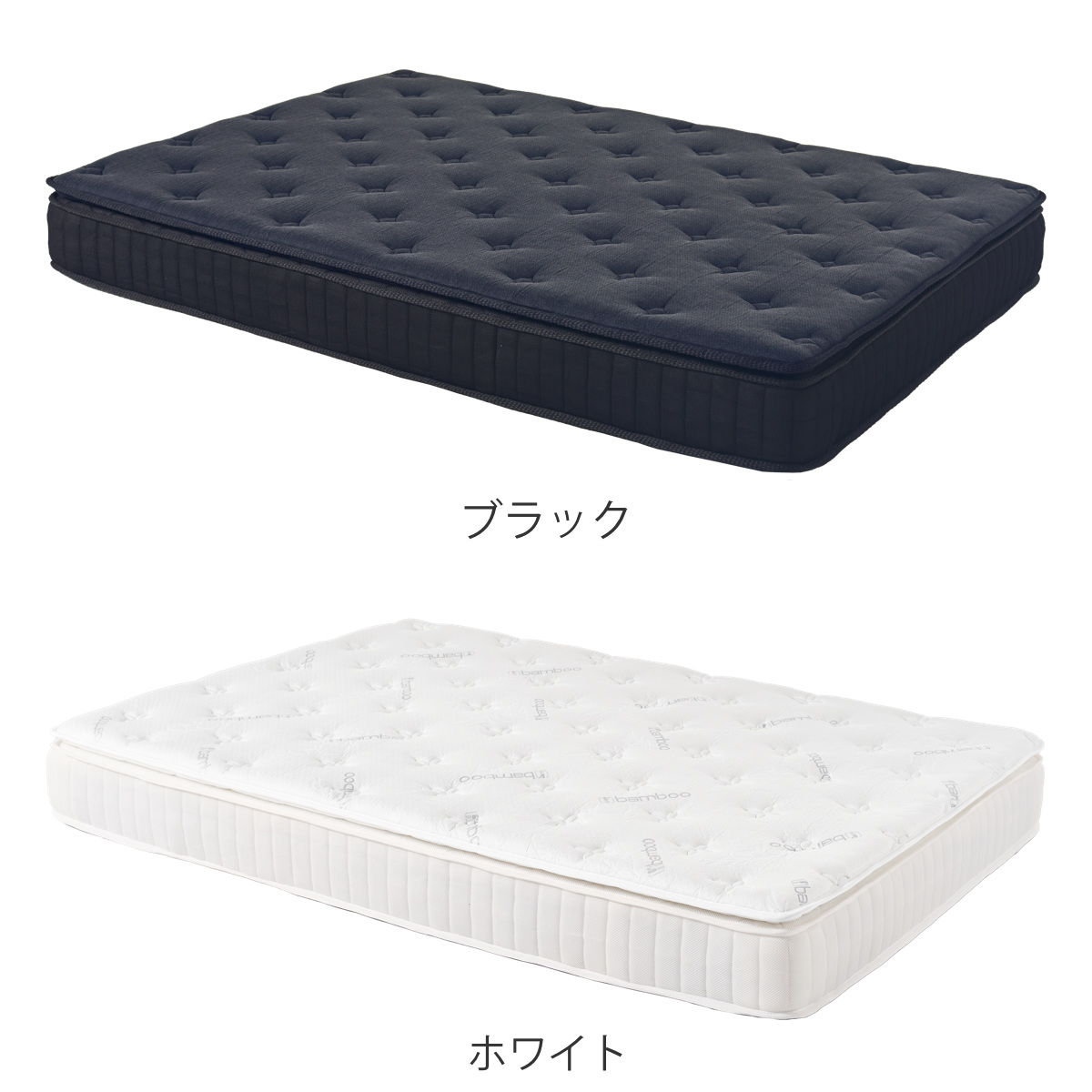 マットレス ダブル ポケットコイル ピロートップ付き 竹のちから ( 寝具 マット 圧縮ロール 搬入簡単 吸湿 速乾 竹炭 竹繊維 ピロートップ 快適 厚さ23 ブラック ホワイト ) 【ホワイト】