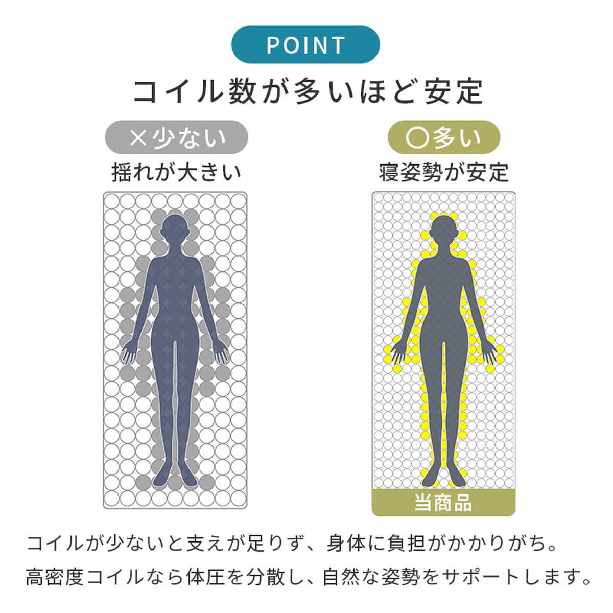 高密度ポケットコイルが体圧を分散