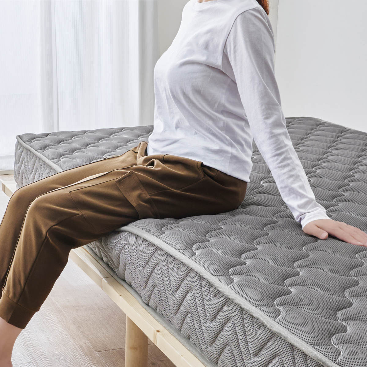 メッシュ生地の内側にはウレタンフォームを重ねた多層構造を採用しました。「通気性」と「クッション性」のバランスにこだわり、しっかり支えながらも快適な寝心地を実現しました。