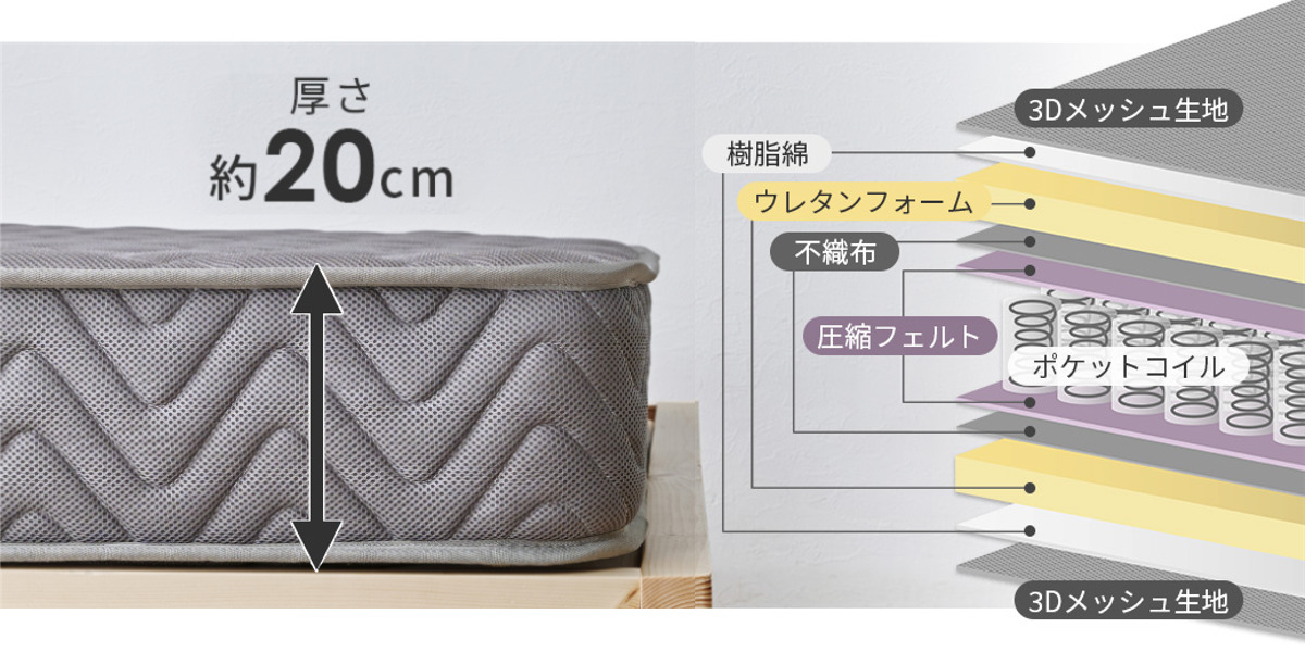 | 材質 | 主材:ポケットコイル 張地:ポリエステル |