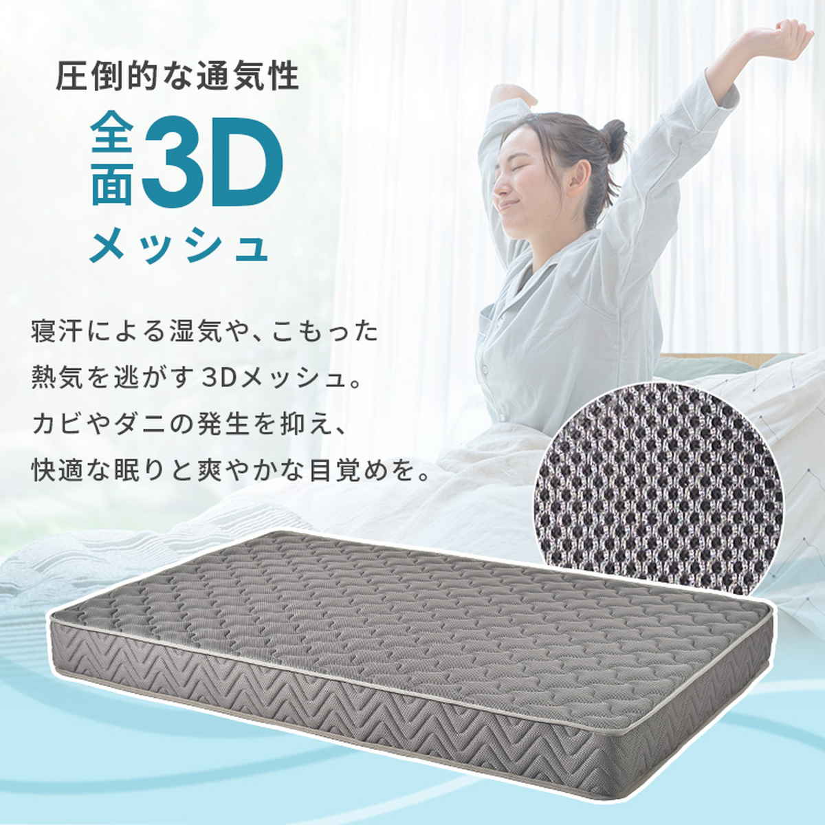 マットレス セミダブル ポケットコイル 両面仕様 3Dメッシュ ( 寝具 マット 圧縮ロール 搬入簡単 メッシュ 通気性 やや硬め エッジサポート 快適 厚さ20 高品質 コンパクト )