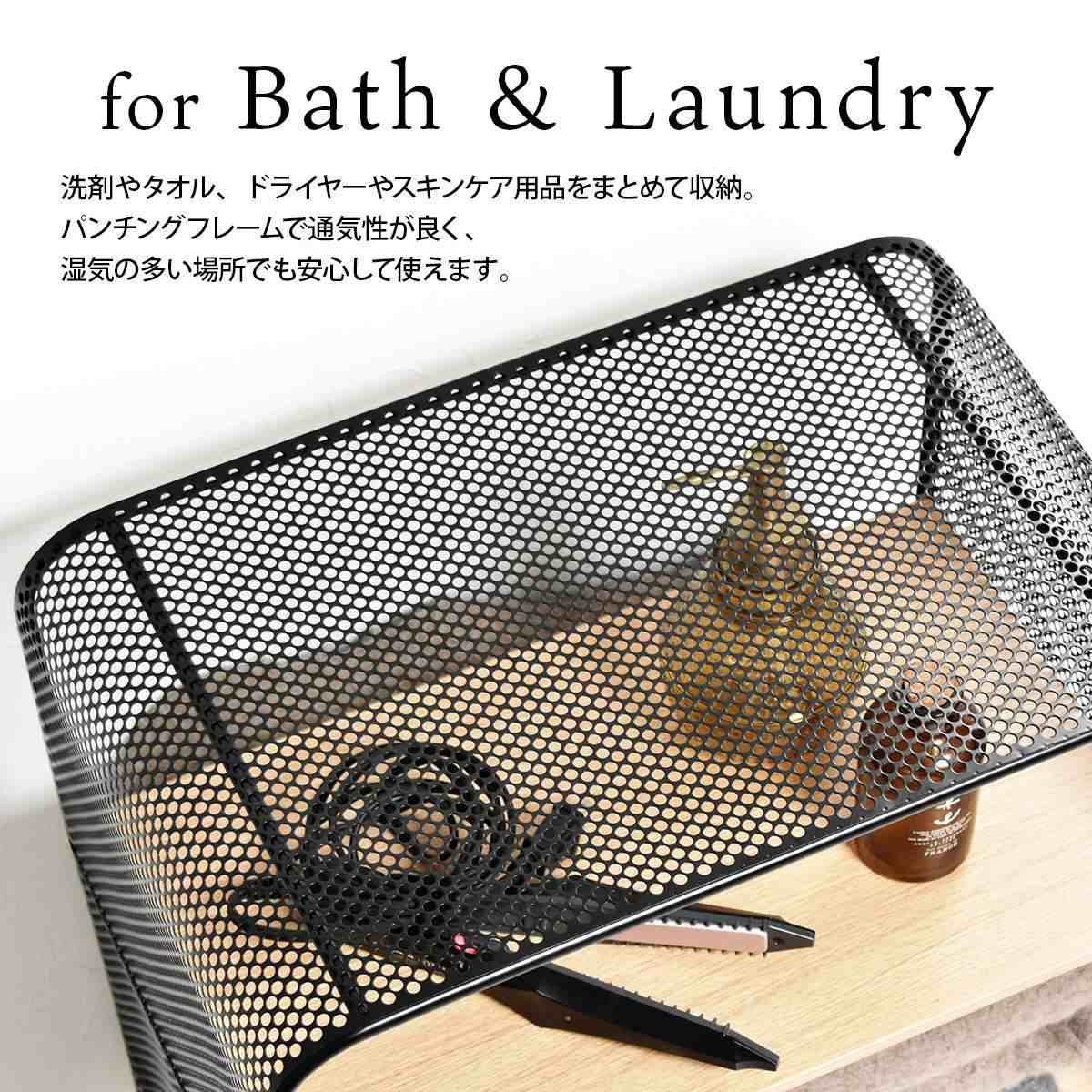 フレームは、パンチング加工が施されたスチールを採用。湿気がこもりにくく通気性が良いため、キッチンやランドリー、バスルームなどの水回りでも安心してお使いいただけます。