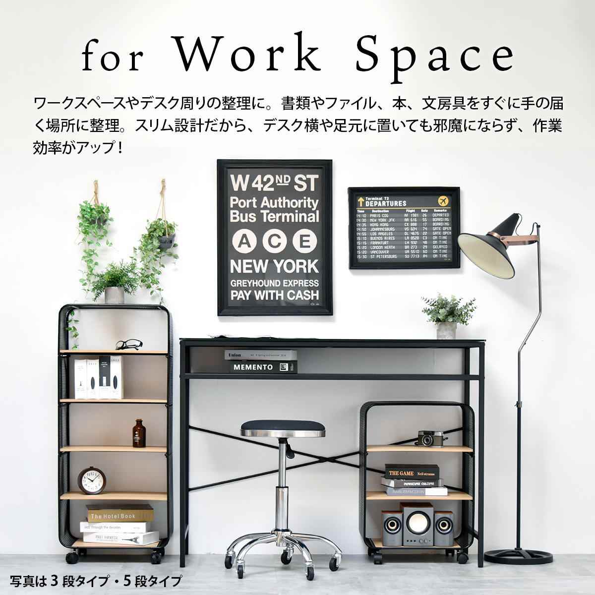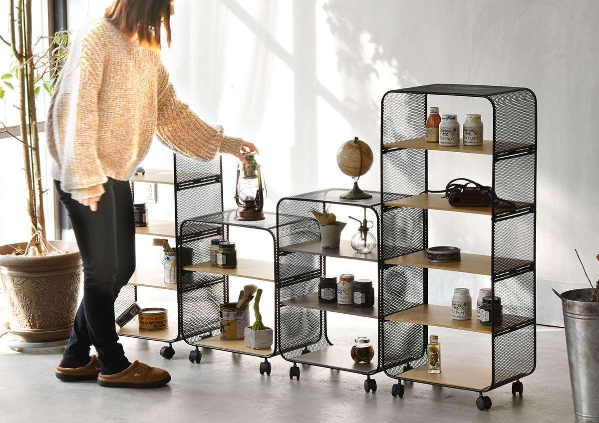 ブラックスチールのフレームと木目調棚板の組み合わせがスタイリッシュなオープンラックです。幅44cmとコンパクトでありながら収納力は抜群。見せながらお部屋を整えて、お好きな場所へ動かせる自由さが魅力です。