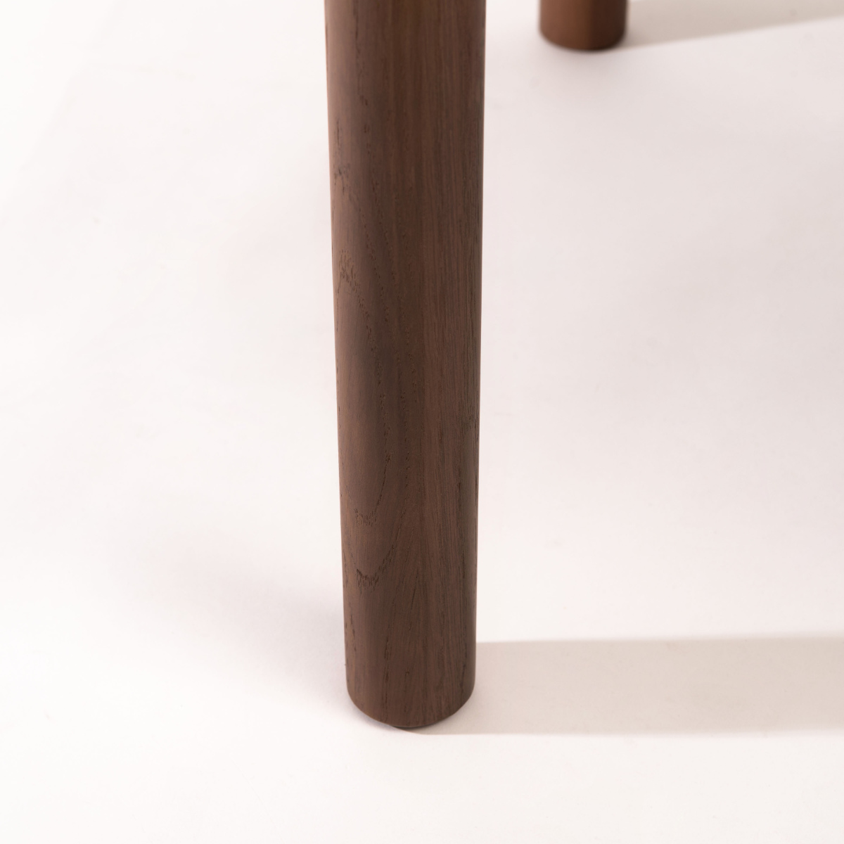 脚部が天板の外側に配置された、少し個性的なデザインになっています。丸みのある天板に合わせて、やさしい印象の丸脚を採用しています。フレームの上に天板をのせたような構造が、他にない表情を生み出します。