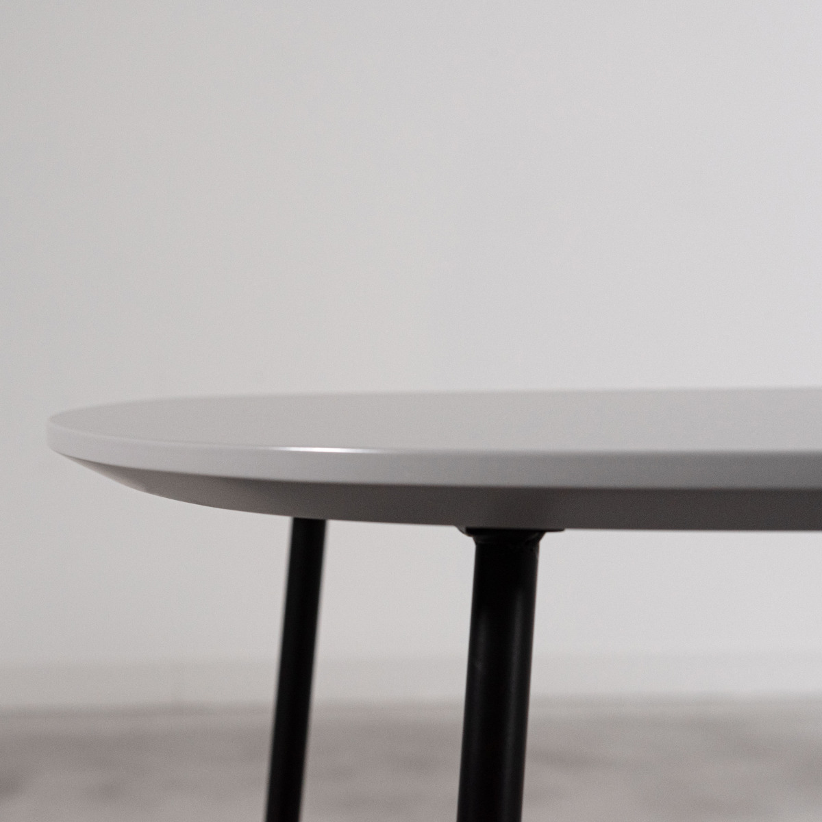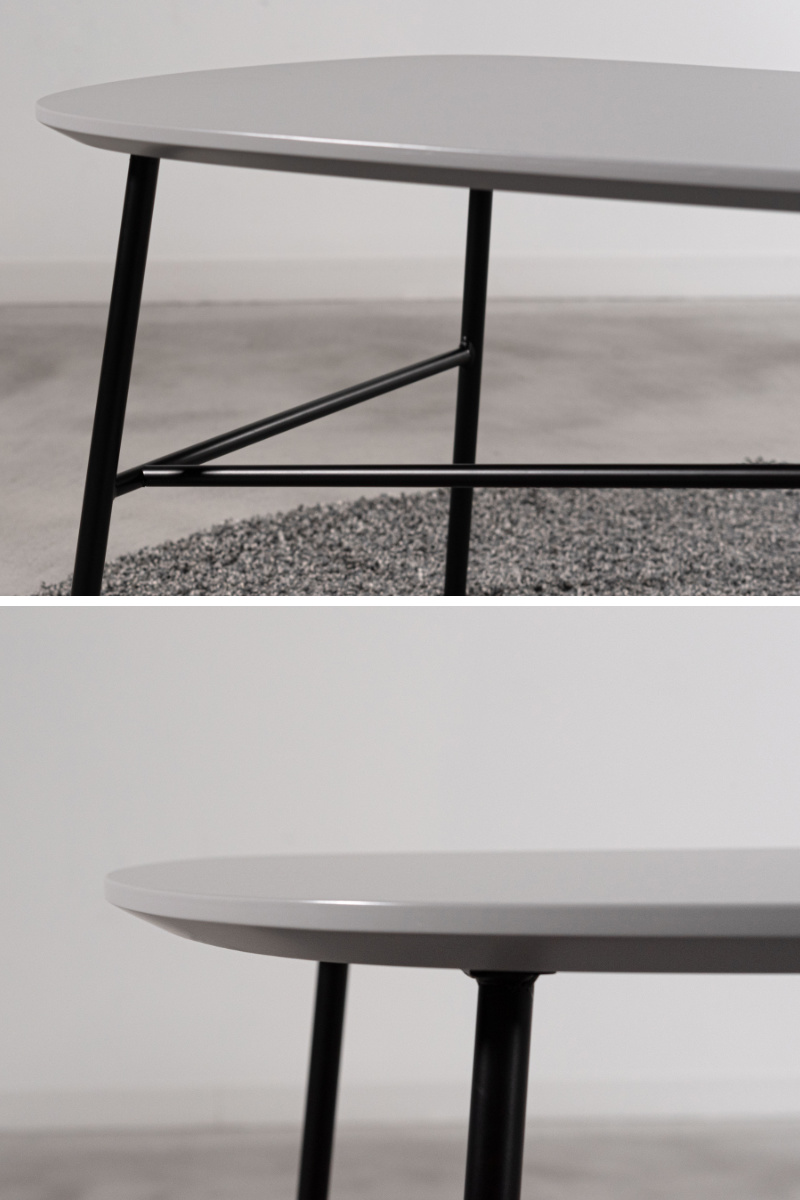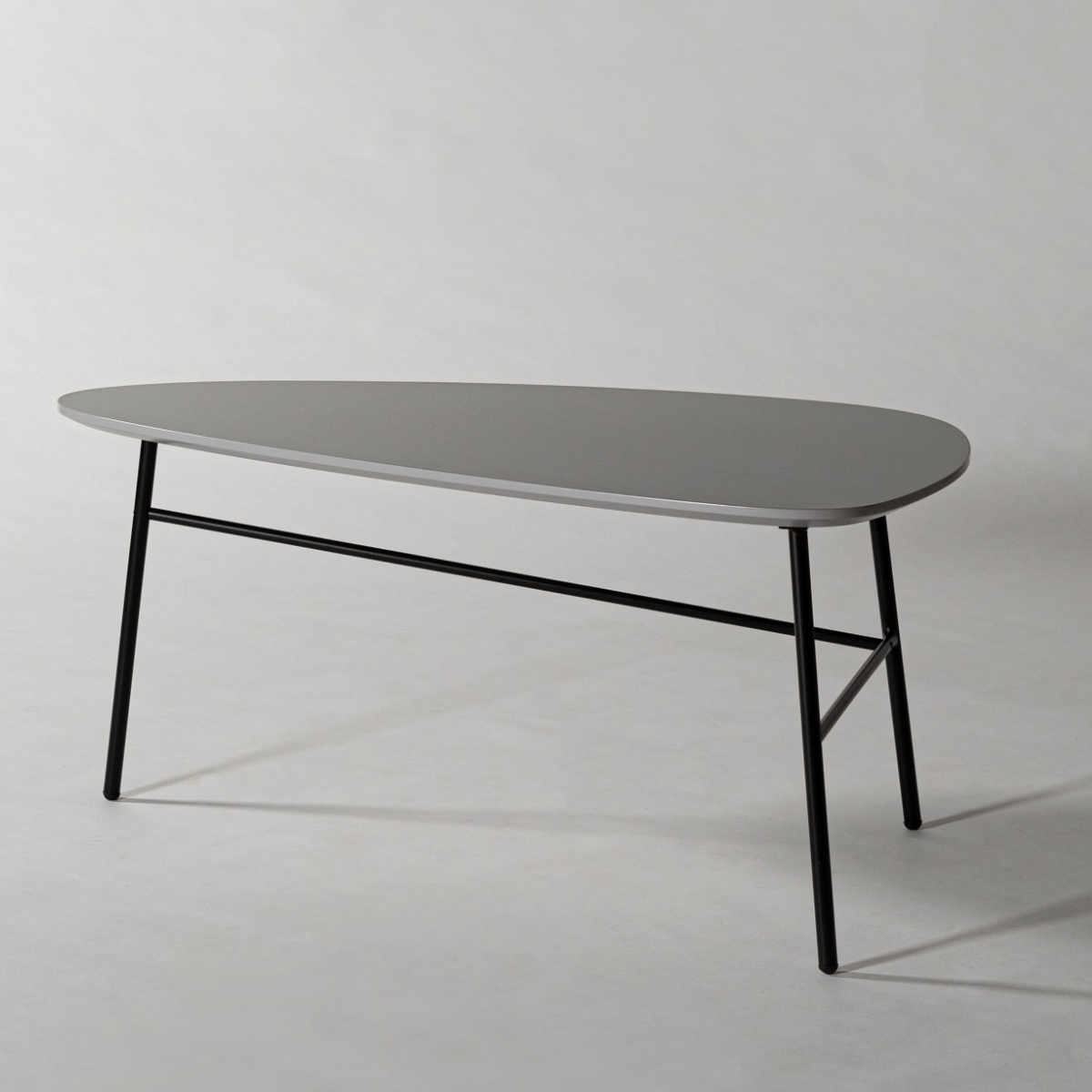 なめらかなラインで描かれた天板は、角を感じさせないやさしいフォルム。控えめでありながら、縁や厚み、脚とのバランスまで丁寧に設計された、細部にこだわりを感じるデザインです。