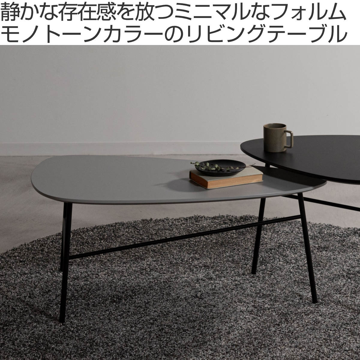 カラーはブラックとグレーの2色展開です。ブラックは空間を引き締めるシャープな印象に、グレーは落ち着きのある洗練された雰囲気を演出します。モノトーンがインテリアをすっきりと整えます。