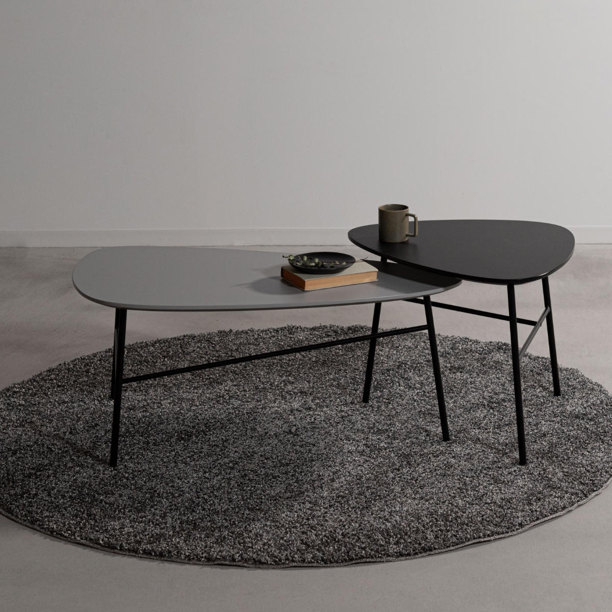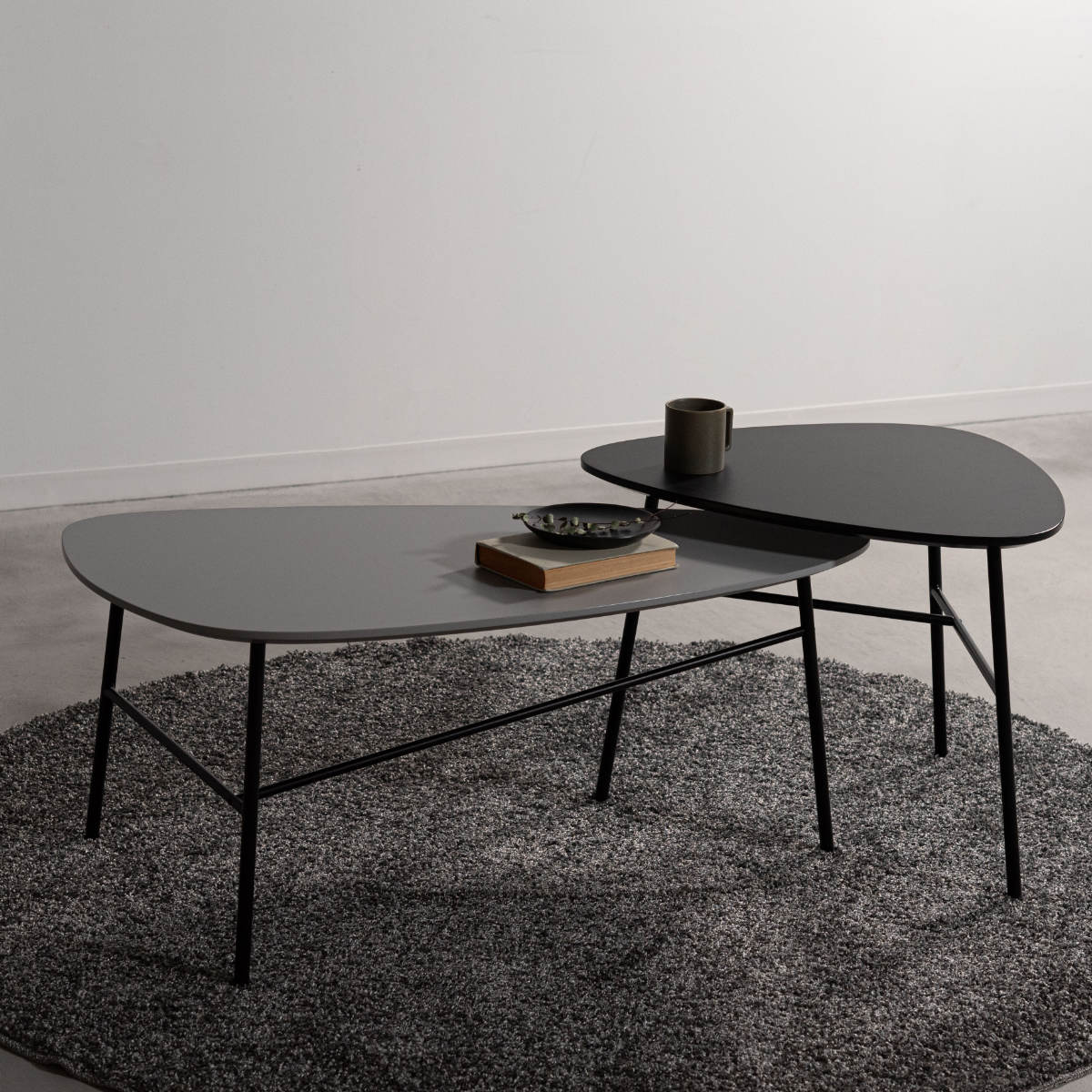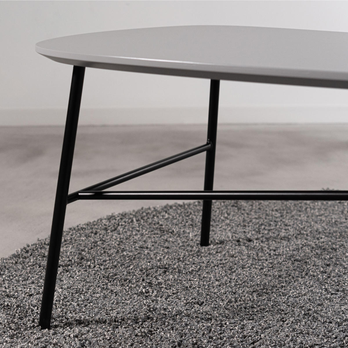 さりげなく目を惹くモノトーンのリビングテーブル。なめらかな三角フォルムの天板が個性を放ちながら、空間に自然となじみます。無駄を省いたデザインがフォルムの美しさを引き立て、リビングやソファ前などに置きやすい一台です。