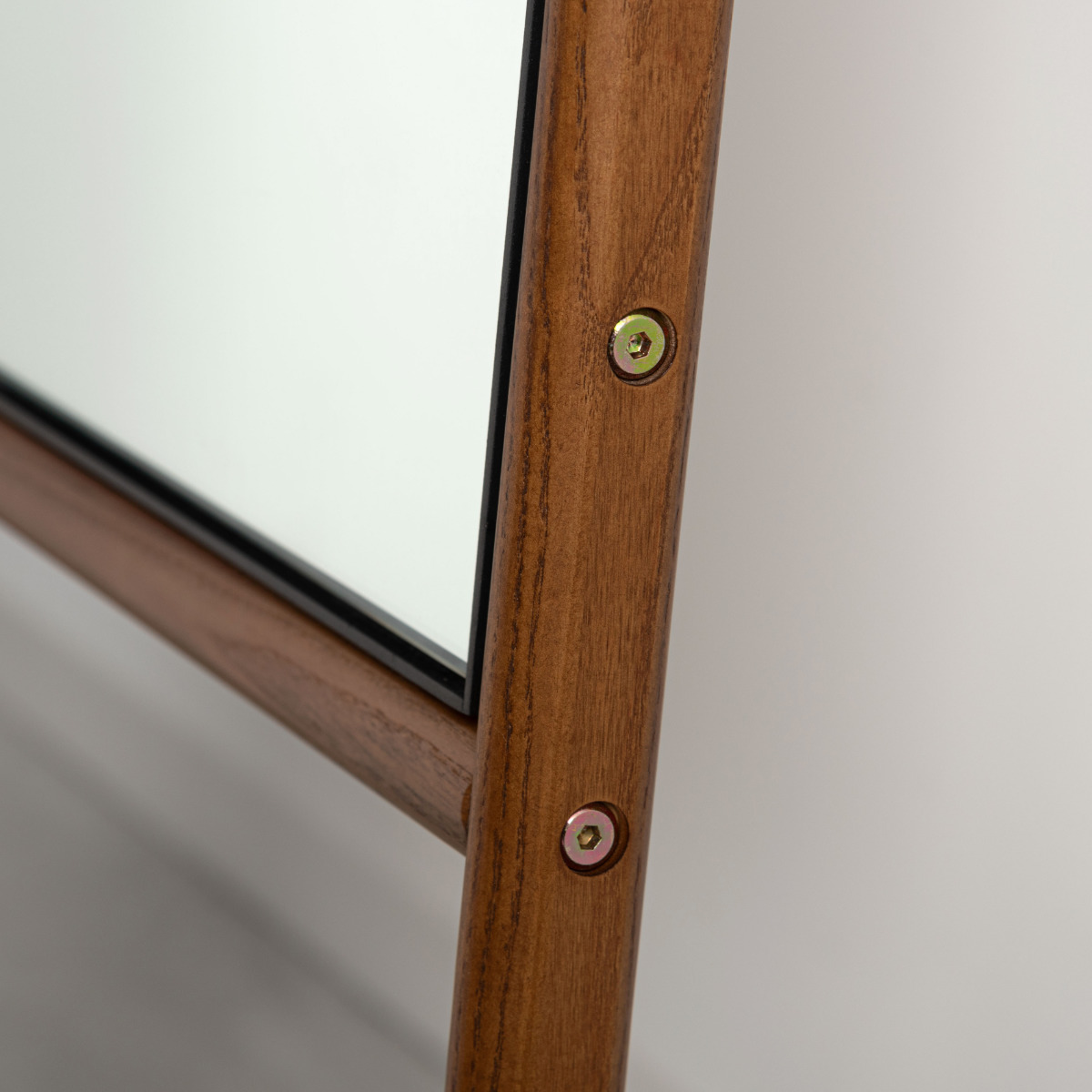 オーク材のフレームと丸みを帯びたフォルムが、空間にあたたかみとやさしい印象を添えるスタンドミラー。木の温もりが感じられるため、お部屋に自然となじみ、置くだけで落ち着いた雰囲気を演出できます。