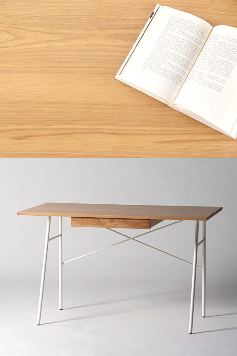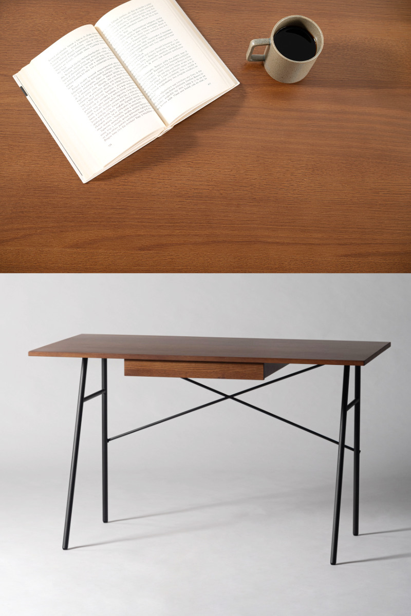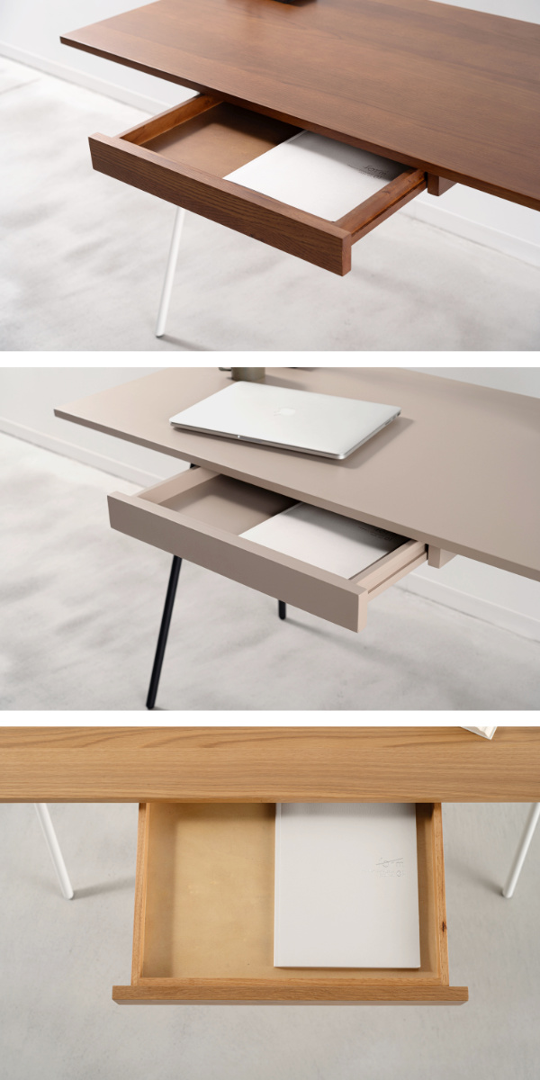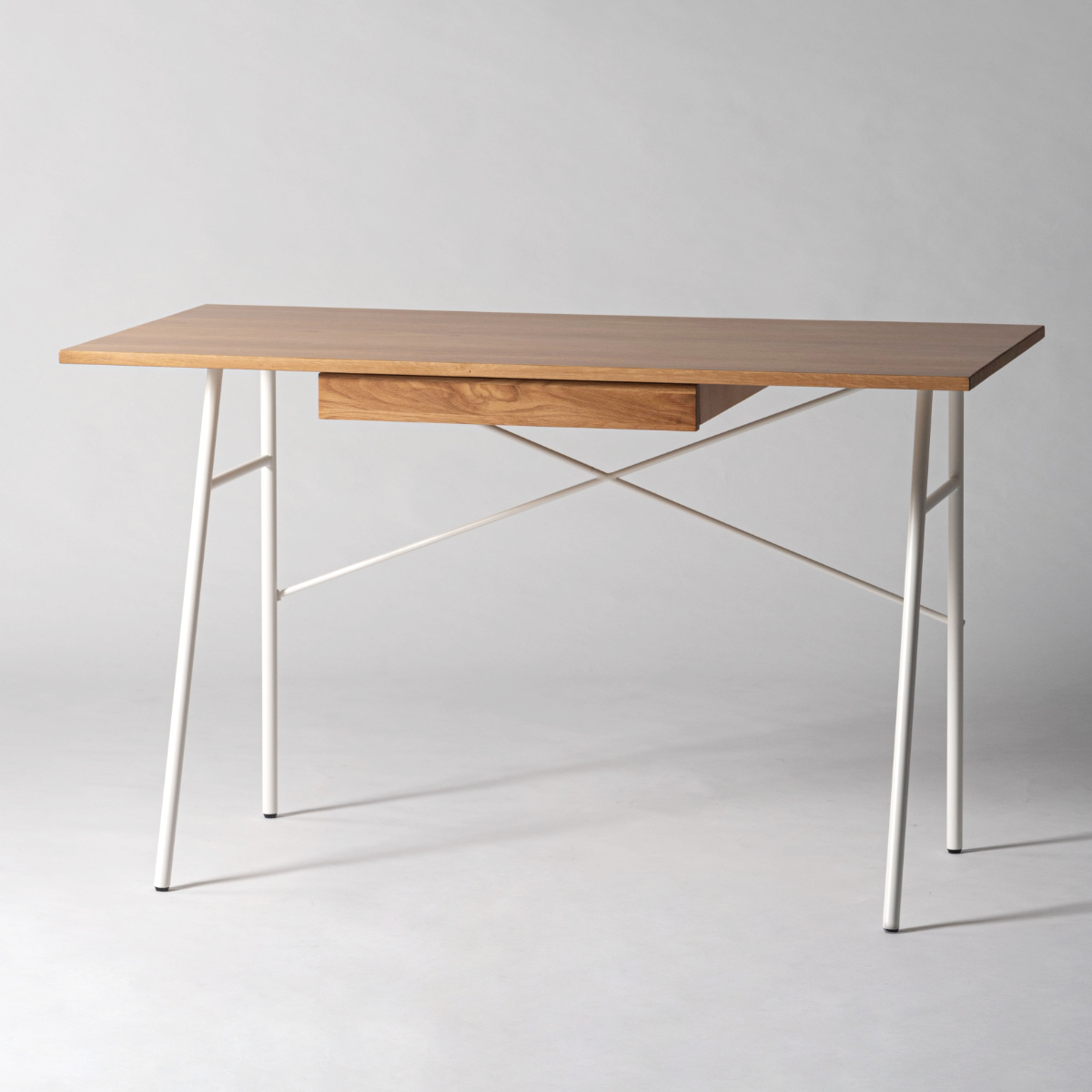 薄く設計された天板と引き出しにスチール脚を組み合せ、シャープでスタイリッシュな印象を与えるデスク。天板3色×脚2色から好きな組み合わせでセレクトできるアイテムです。好みやインテリアに合わせてお選びください。