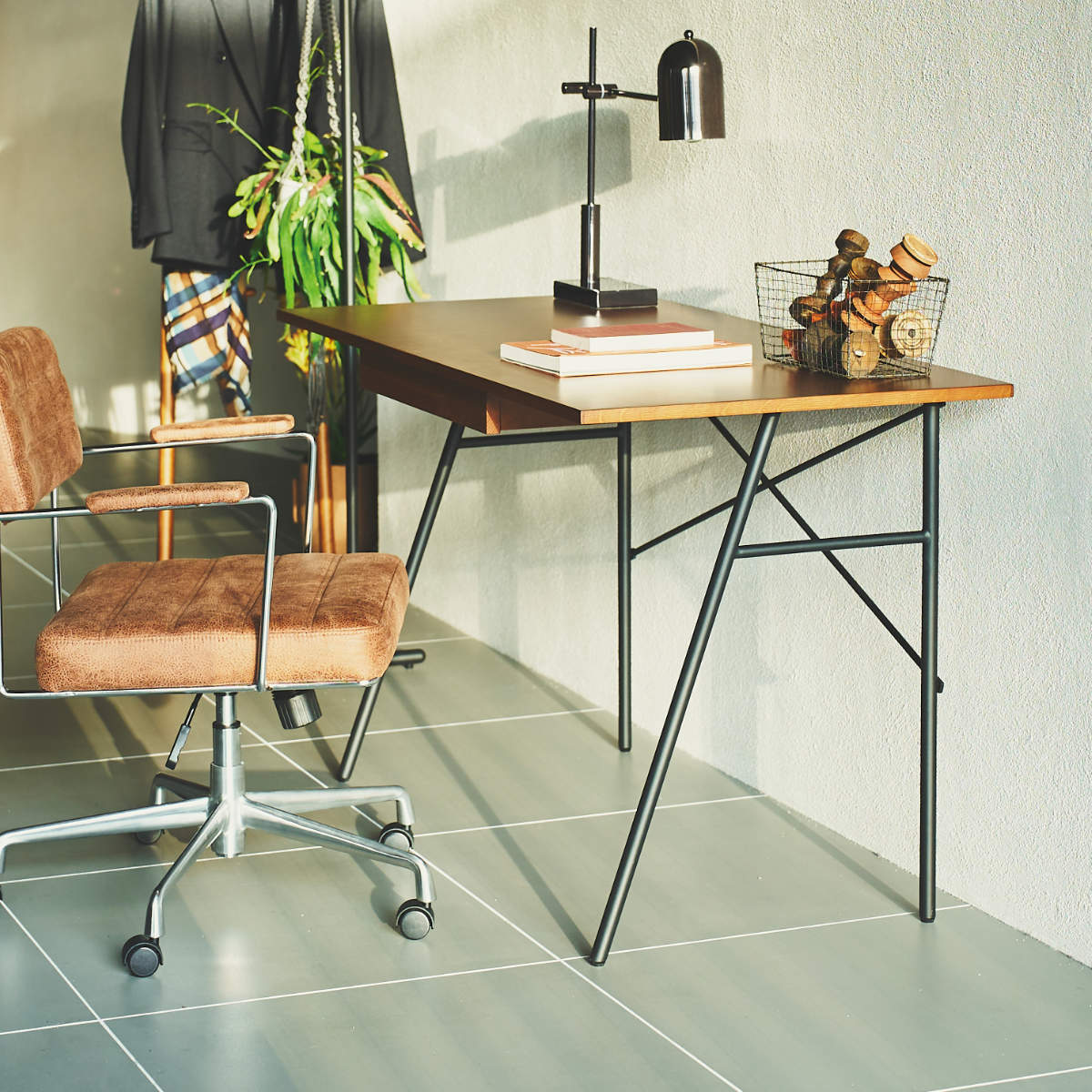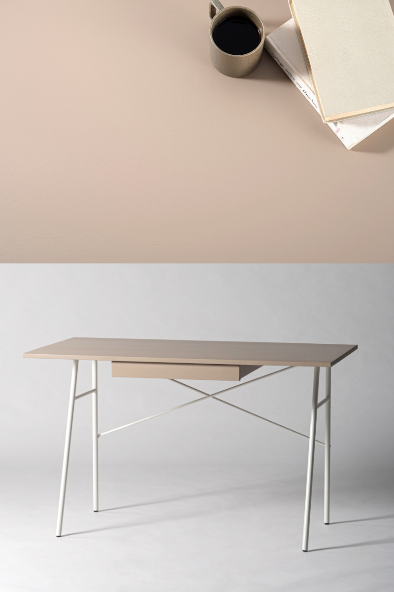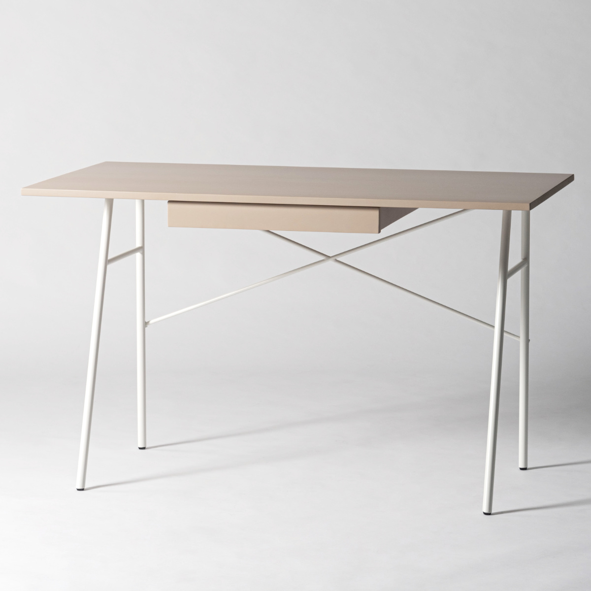 薄く設計された天板と引き出しにスチール脚を組み合せ、シャープでスタイリッシュな印象を与えるデスク。天板3色×脚2色から好きな組み合わせでセレクトできるアイテムです。好みやインテリアに合わせてお選びください。