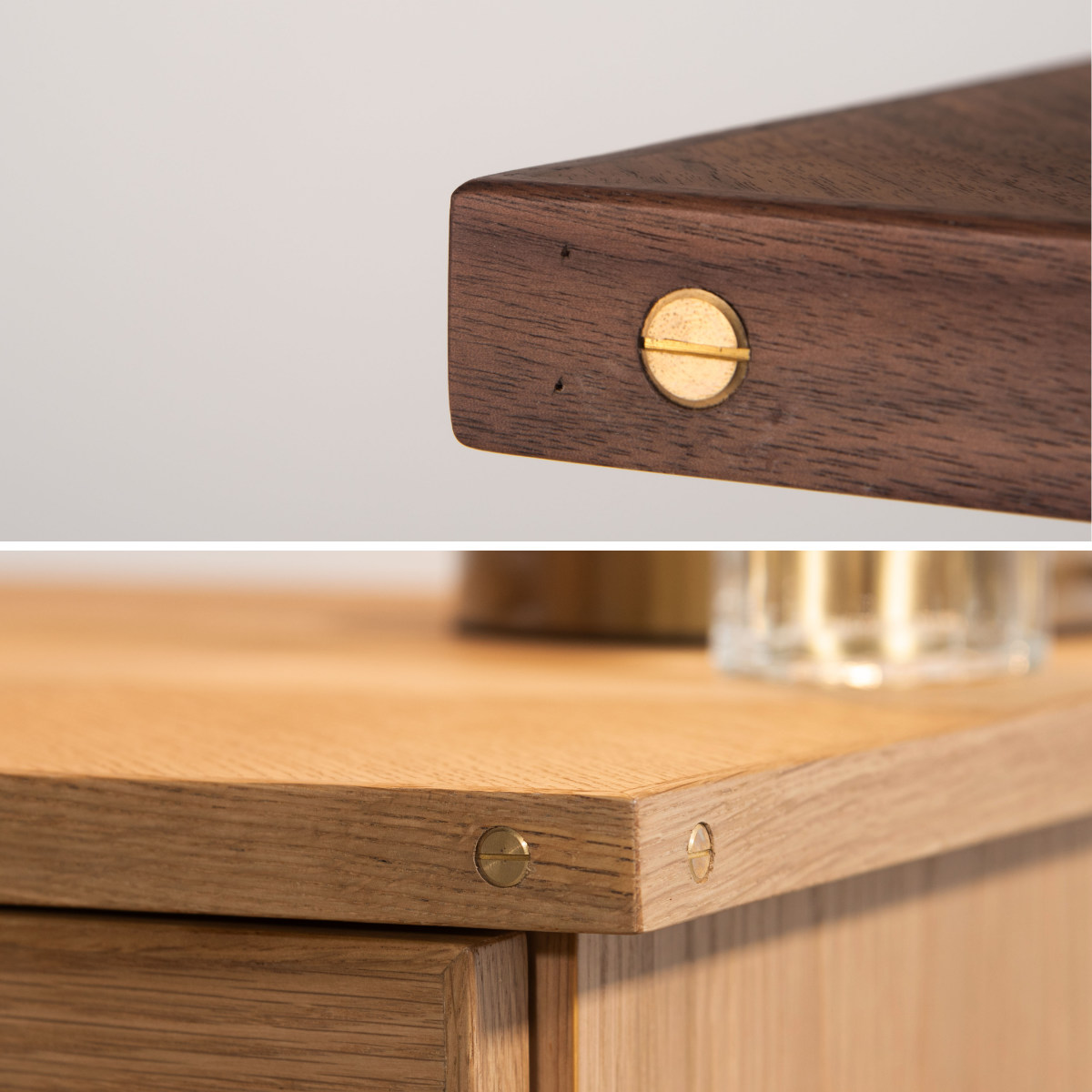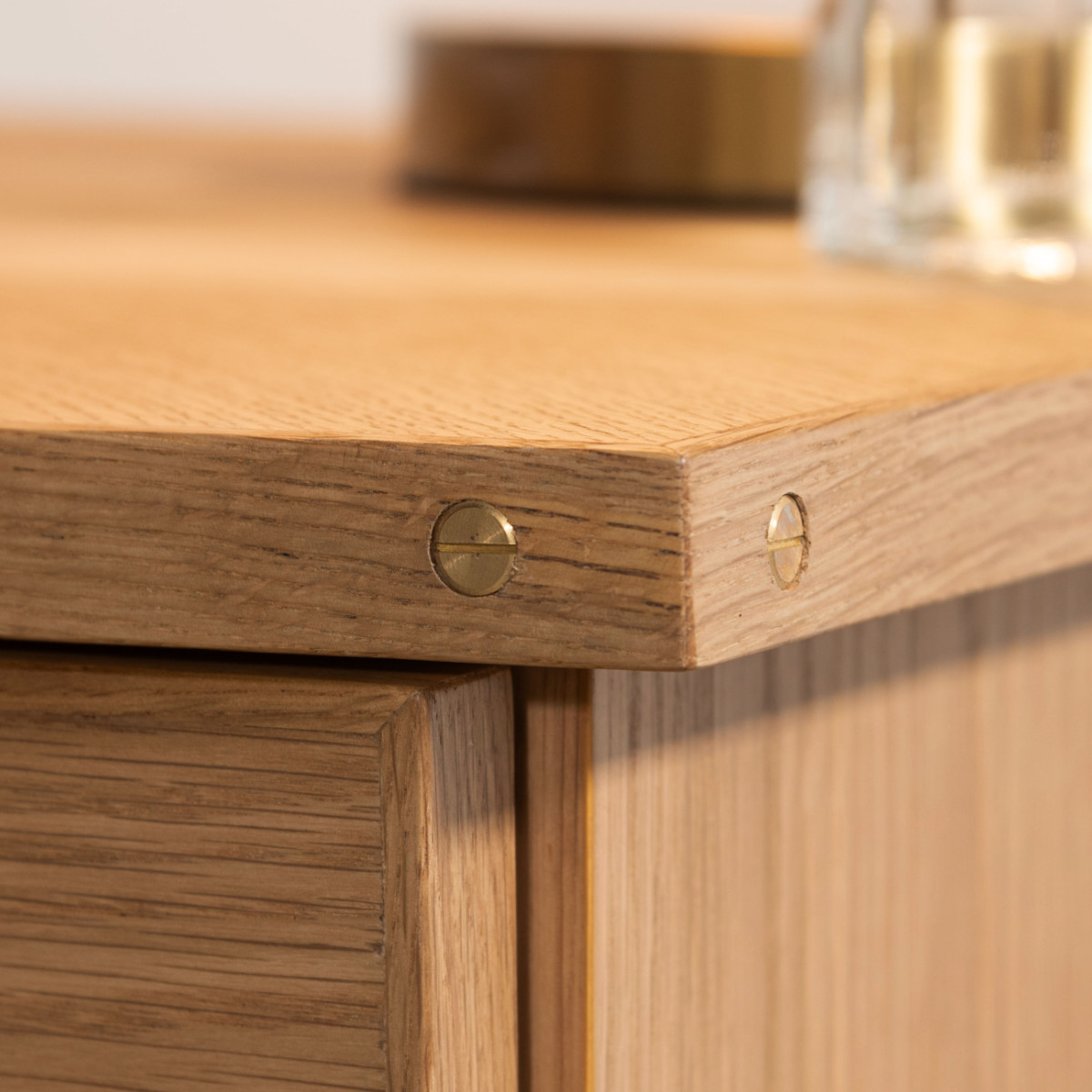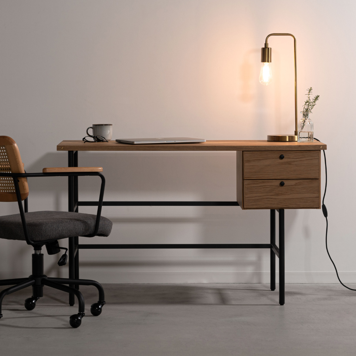 デスク側面にあしらった真鍮が、さりげなくおしゃれなアクセントに。シンプルなデザインの中にも、細部へのこだわりが感じられるパソコンデスクです。