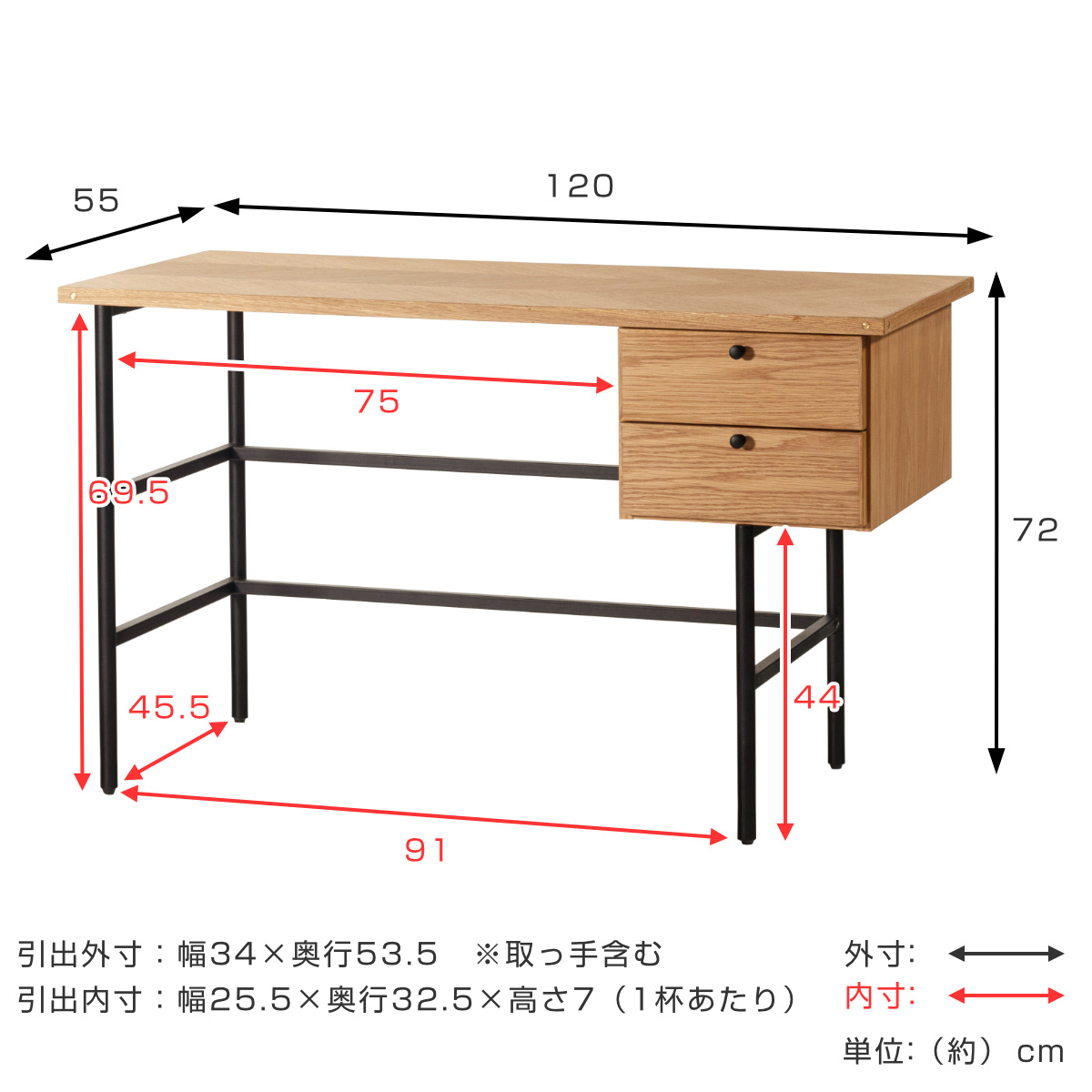 | サイズ | 約 幅120×奥行55×高さ72(cm) |