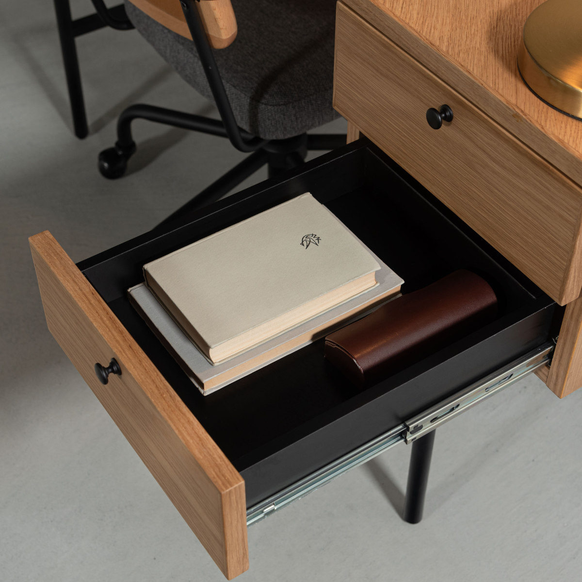 本や書類、小物などちょっとしまいたい物がしっかり入るサイズ感です。デスク周りをすっきりと保つことができます。
