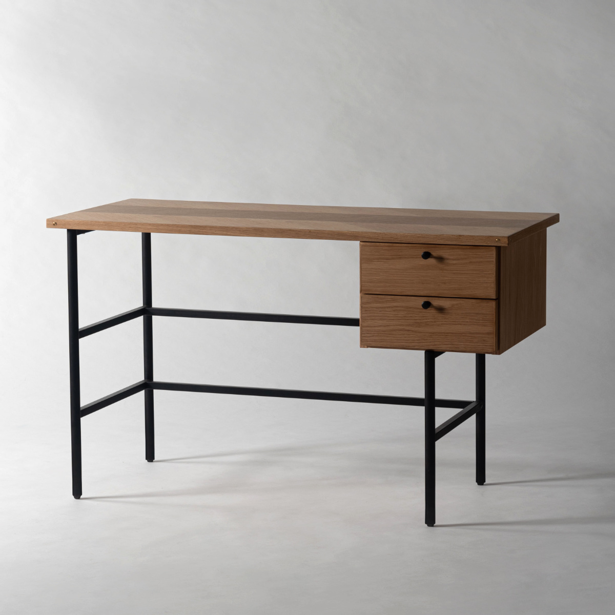 ナチュラルは、木のやさしさを感じる明るく軽やかな雰囲気に仕上げました。ブラックスチールとのコントラストが映え、空間にほどよいメリハリを与えます。
