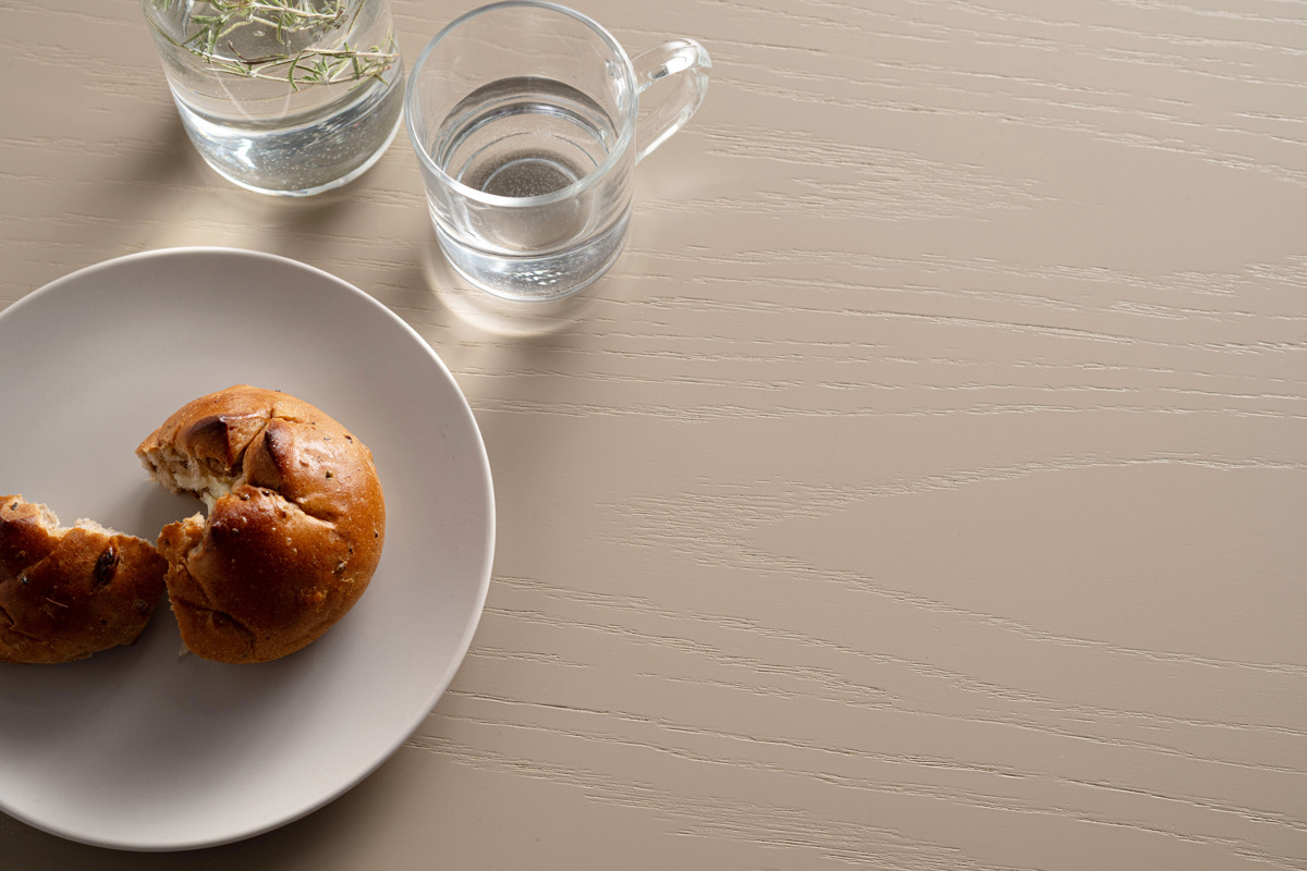 天板は木目のテクスチャを残しつつもやや艶感を出し、ナチュラルモダンな雰囲気に仕上げました。
