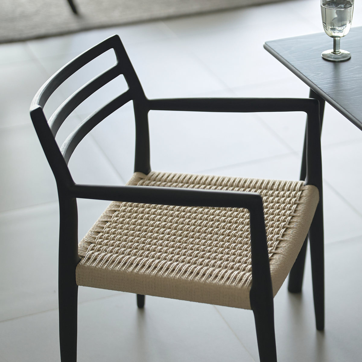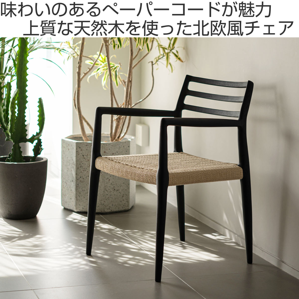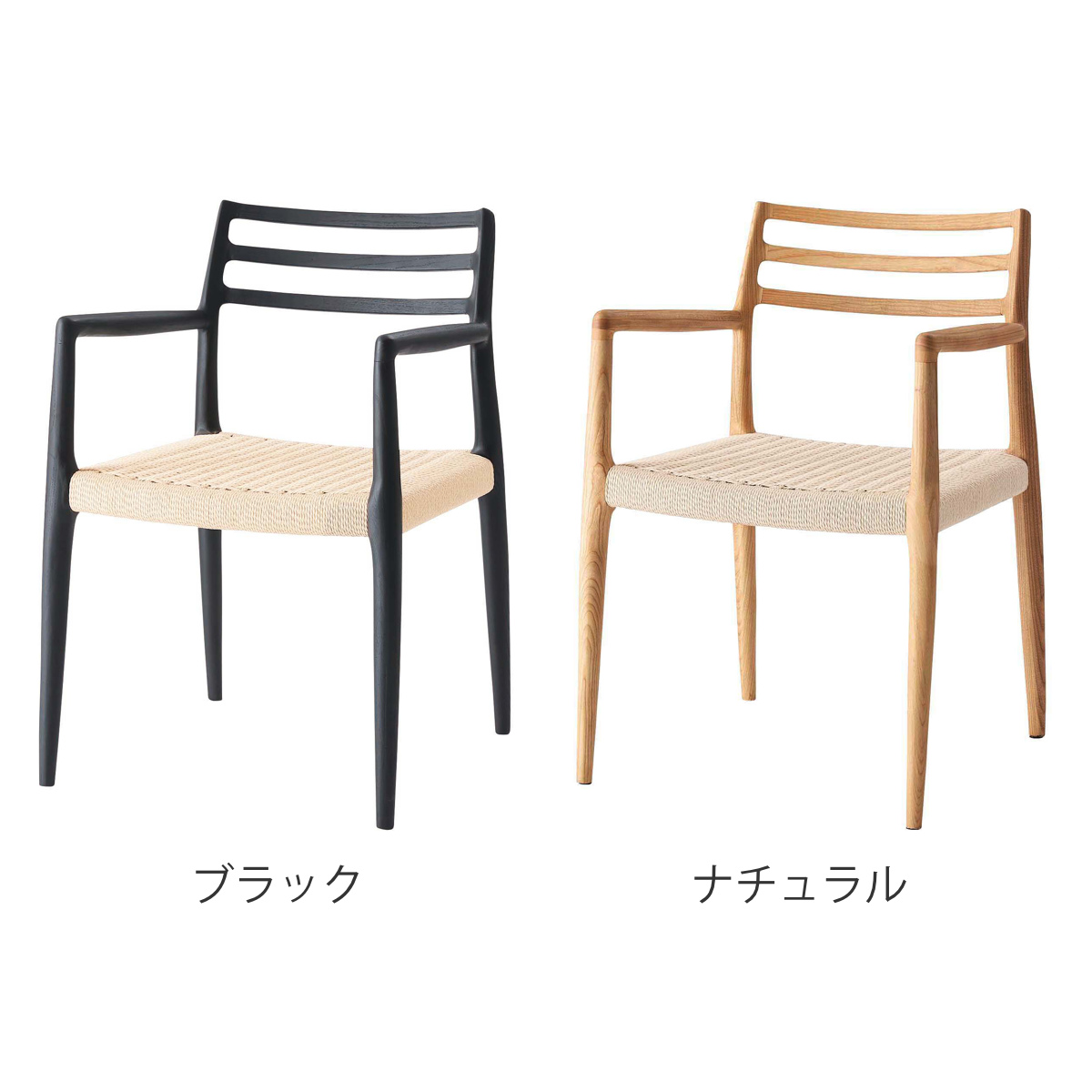form ダイニングチェア 座面高44cm 肘掛け付き ペーパーコード アルネ ( チェア 木製 天然木 アッシュ ダイニング イス 椅子 食卓椅子 肘掛け 完成品 いす 食卓 リビング リビングチェア シンプル 軽量 アームチェア ) 【ブラック】