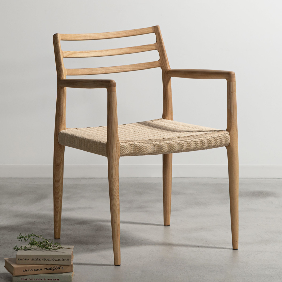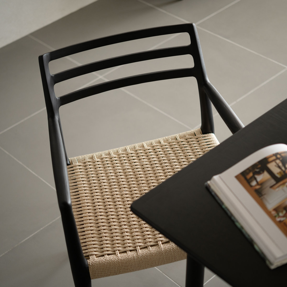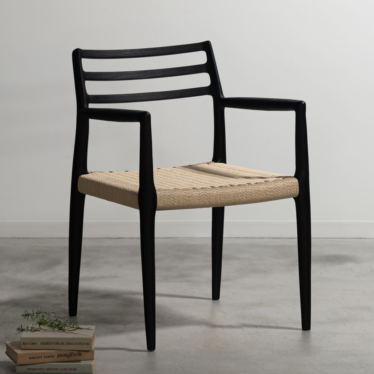 form ダイニングチェア 座面高44cm 肘掛け付き ペーパーコード アルネ ( チェア 木製 天然木 アッシュ ダイニング イス 椅子 食卓椅子 肘掛け 完成品 いす 食卓 リビング リビングチェア シンプル 軽量 アームチェア ) 【ブラック】
